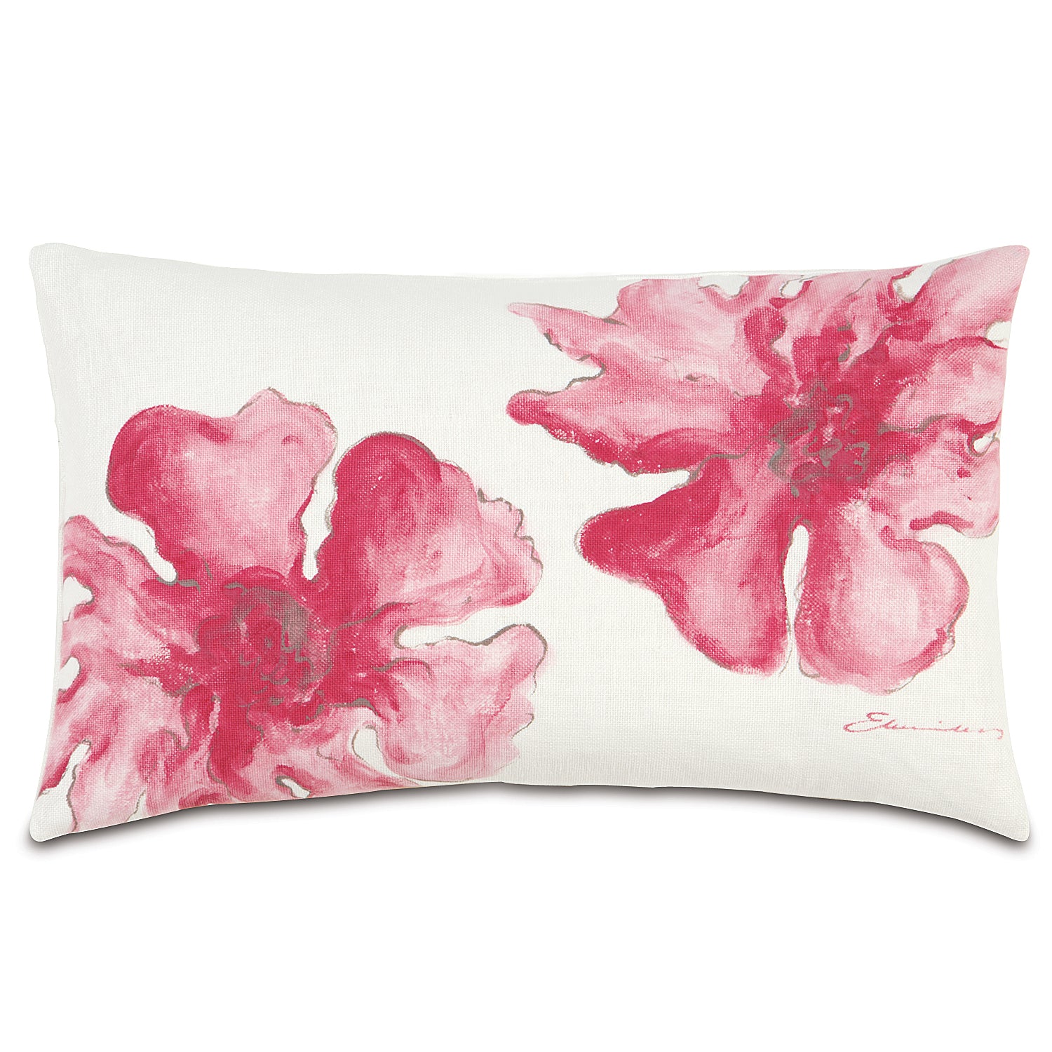 Pink Hand-Painted Floral Hibiscus Pillow Cover 13x22