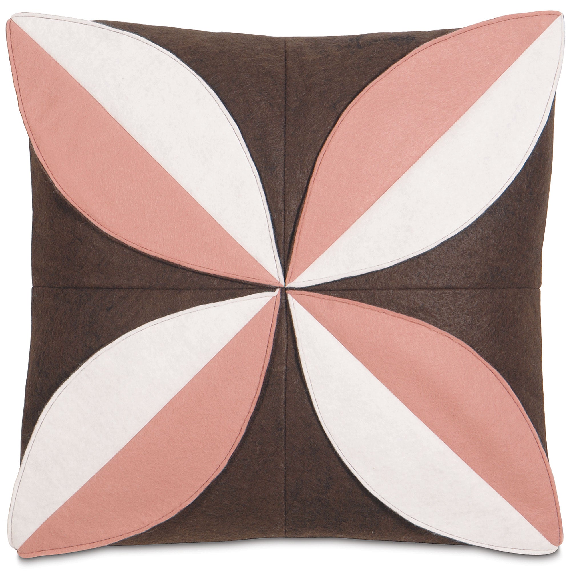 - Decorative pillow with white and pink geometric felt applique gives the look of a bloomed flower