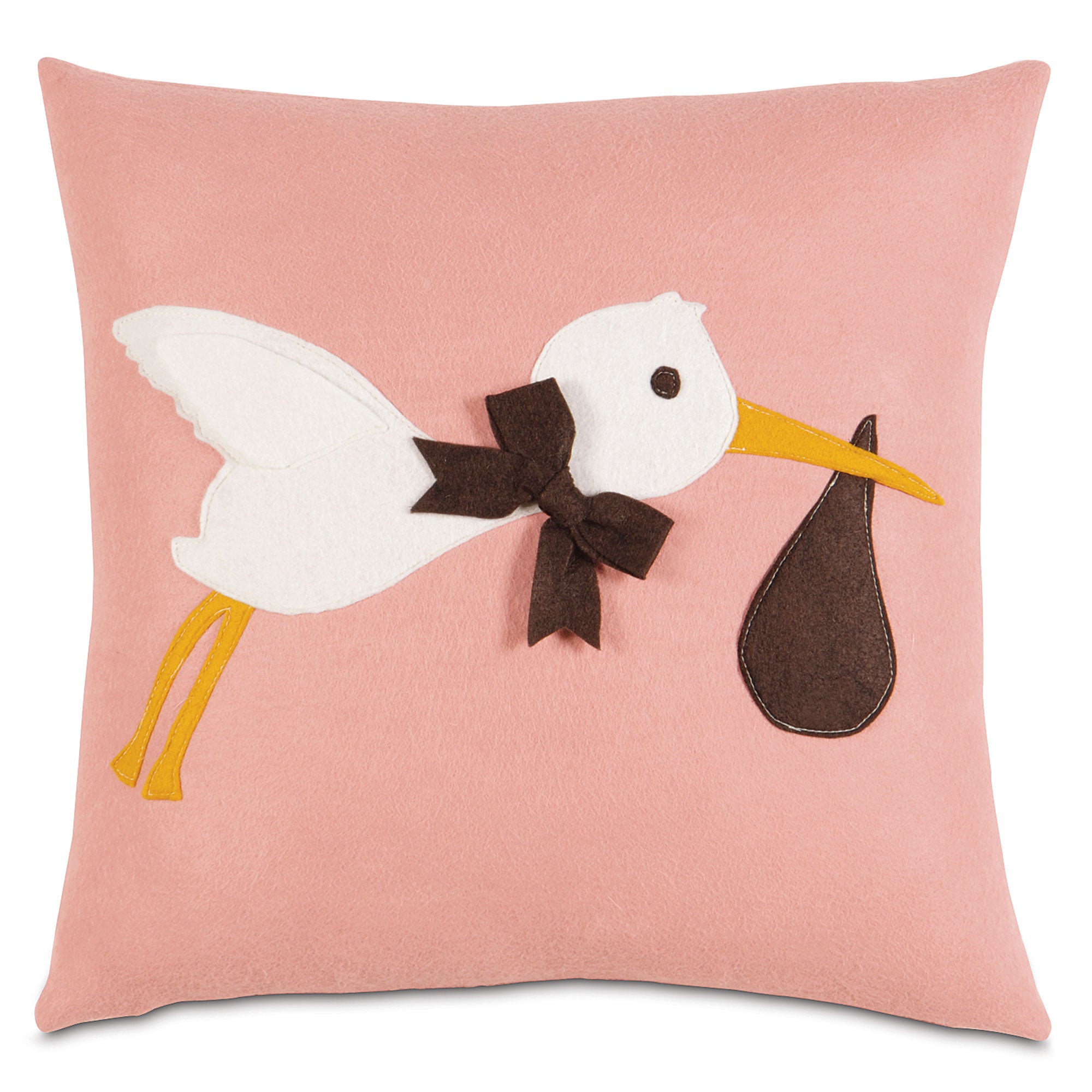 Pink Stork Arrival Appliqué Throw Pillow Cover 16x16