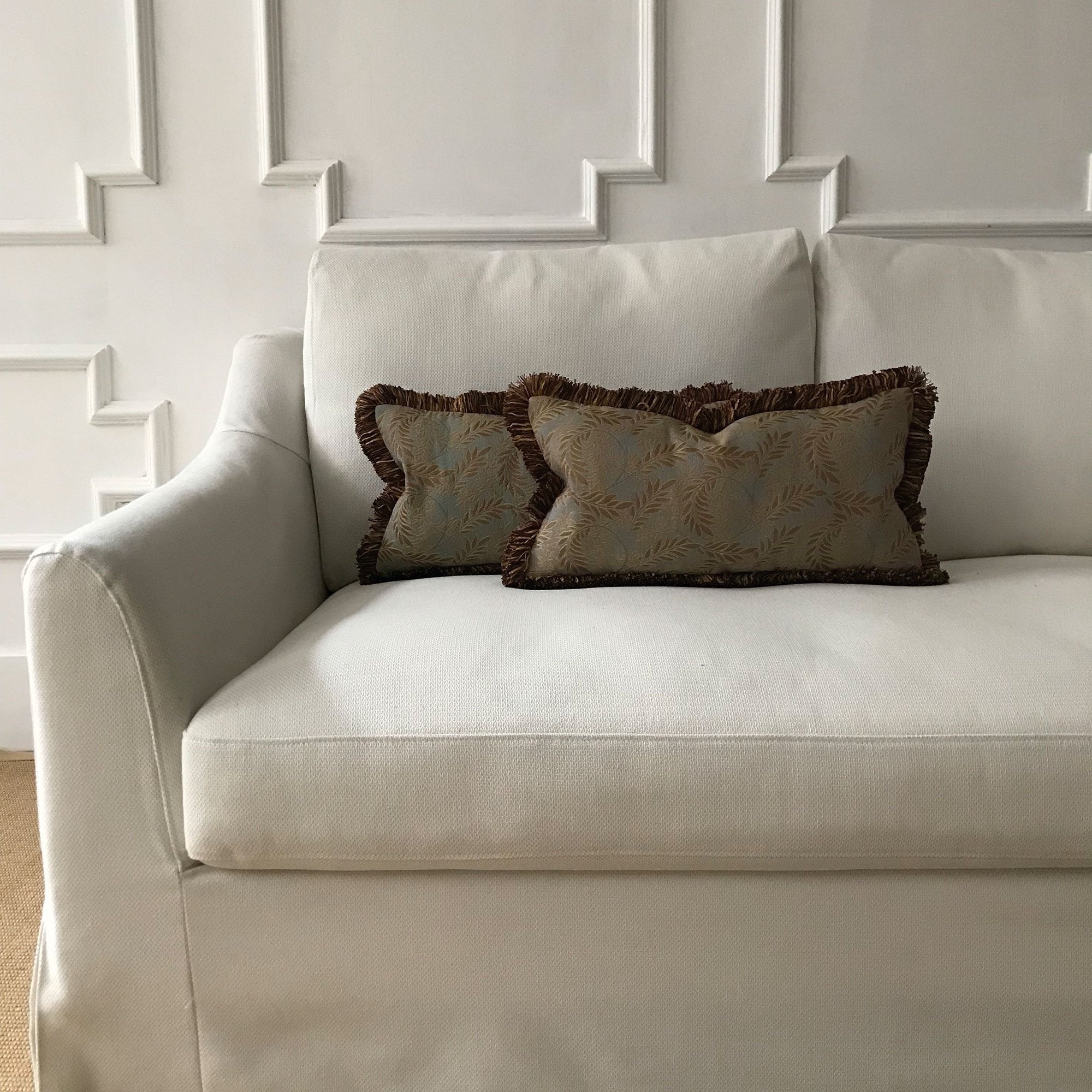 Olive Green Brown Leaf Lumbar Pillow Cover 15x26