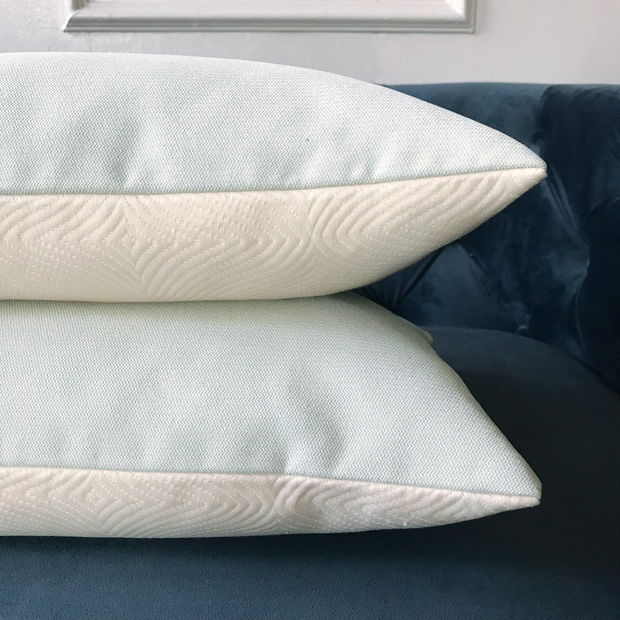 - Lumbar pillow cover with ivory matelassé featuring geometric wave detailing for a quilted look