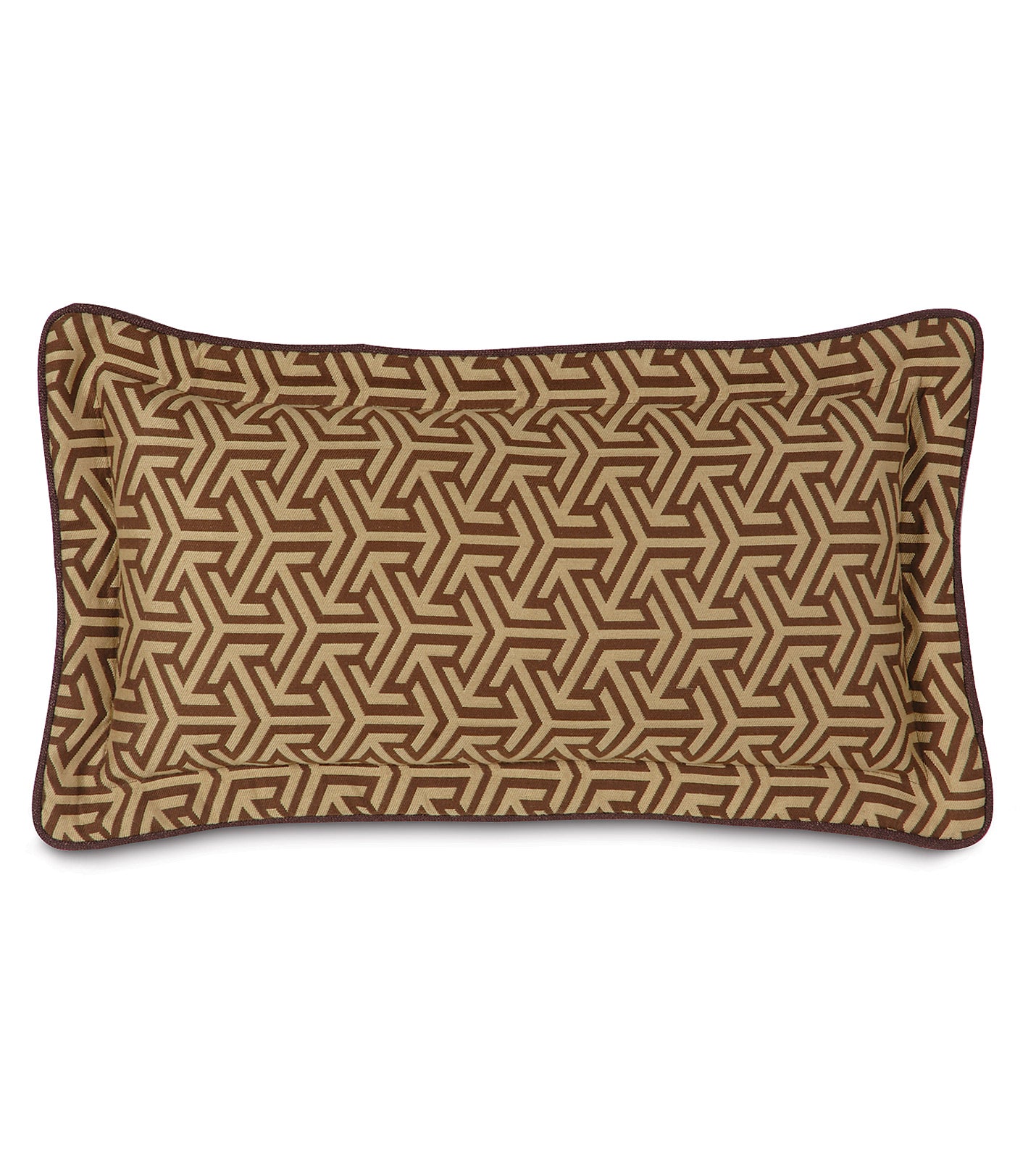 - Earth-toned lumbar pillow featuring a geometric graphic weave