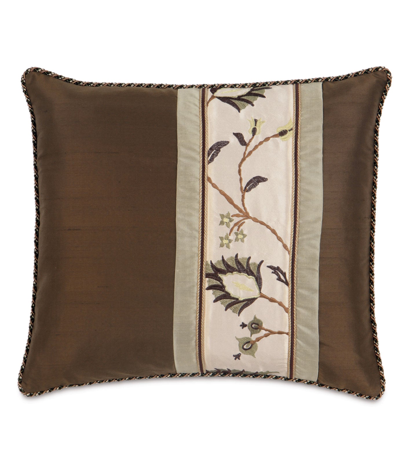 • 100% silk decorative chocolate pillow with a floral silk insert on face