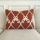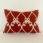 Red Embroidered Linen Welt Trim Lumbar Pillow Cover 16x22