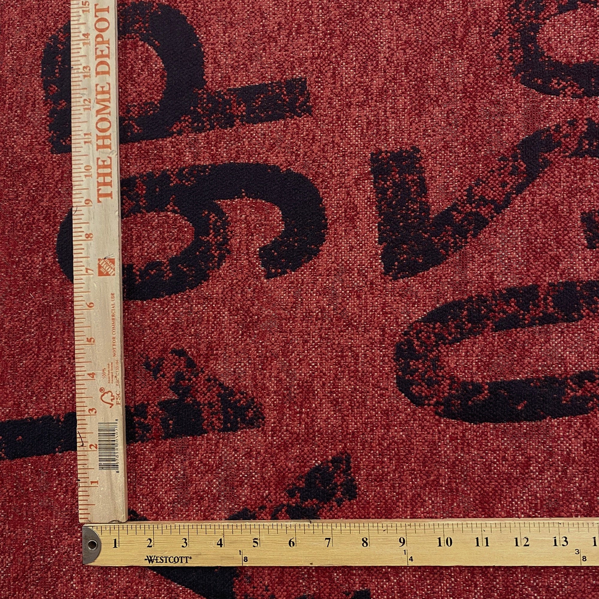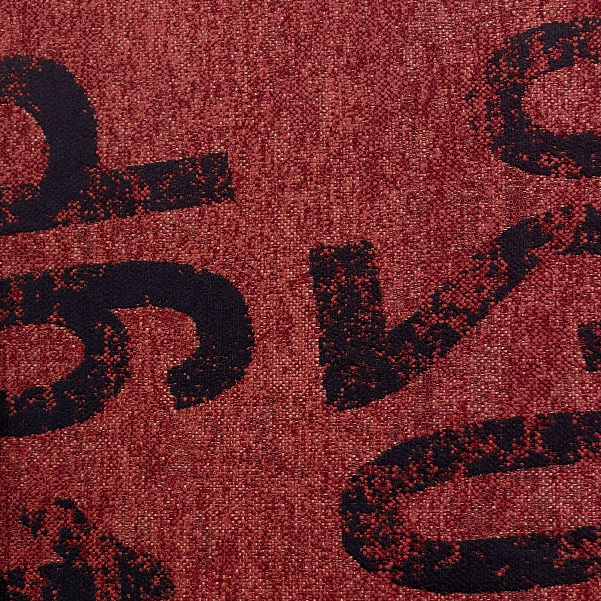 Thick tapestry weave upholstery fabric with an urban graffiti pattern.