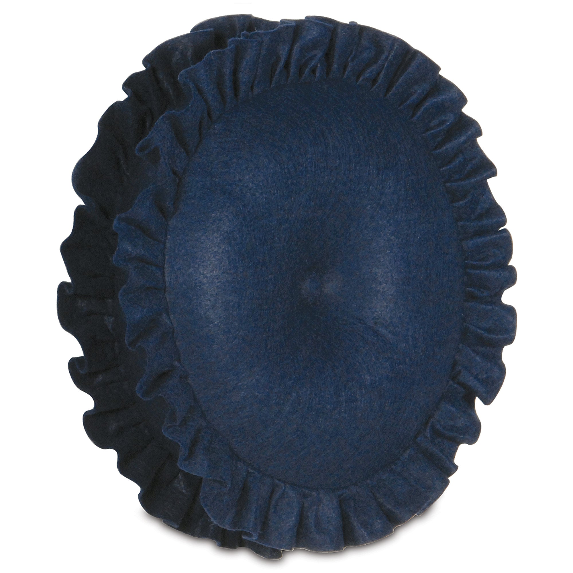 - Navy blue felt rounded pillow cover showcasing a button tufted face.