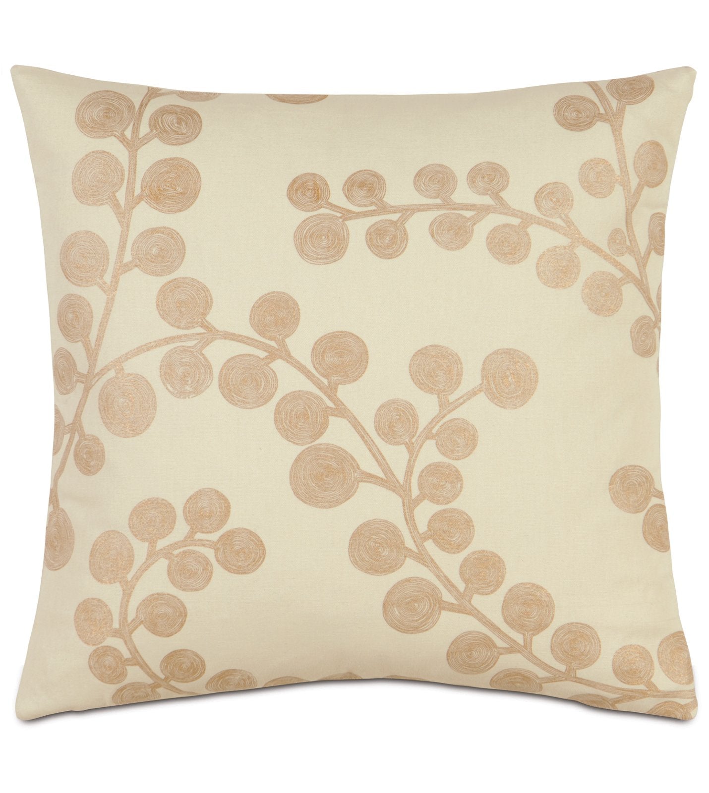 - Decorative pillow cover with a champagne and gold berry branch pattern for understated elegance