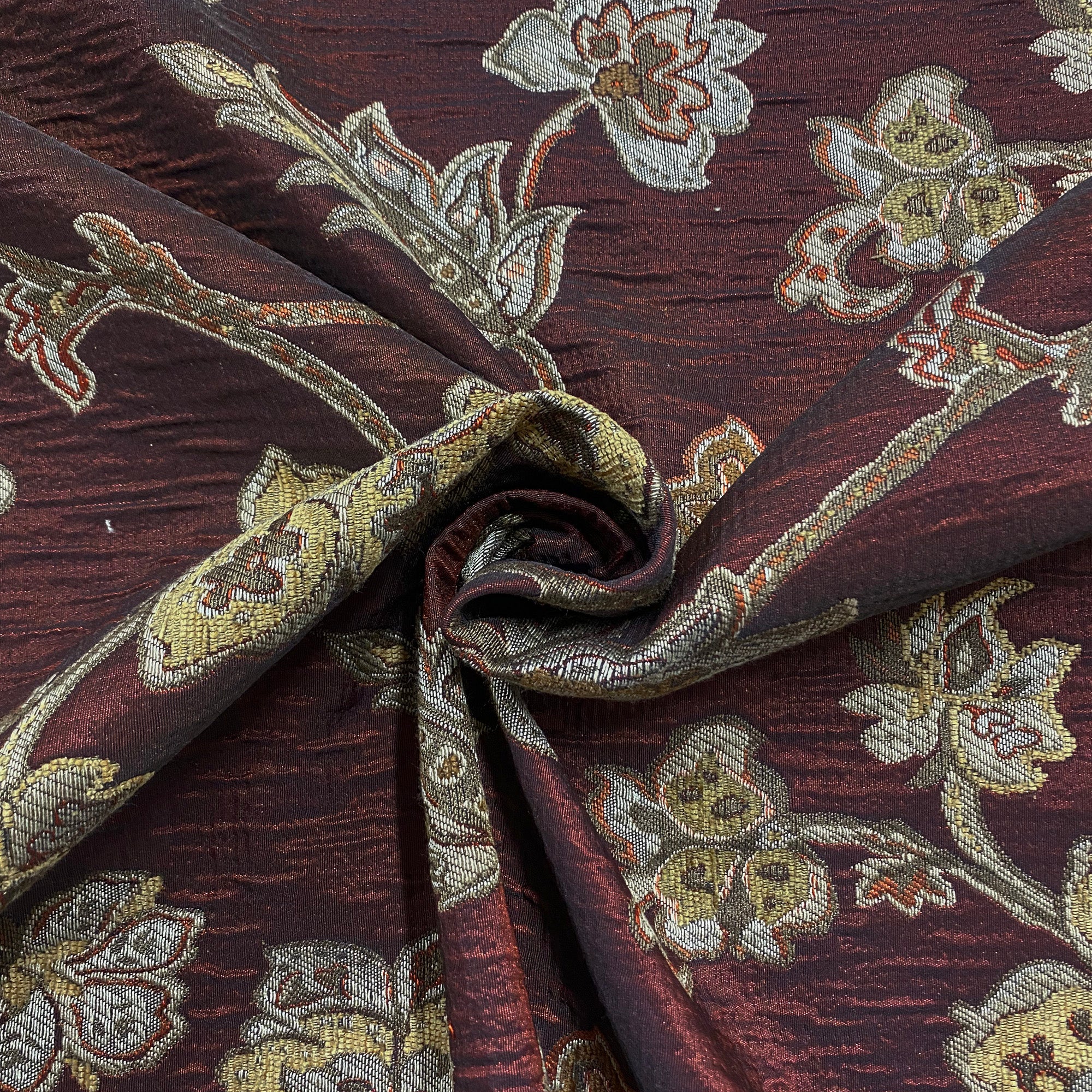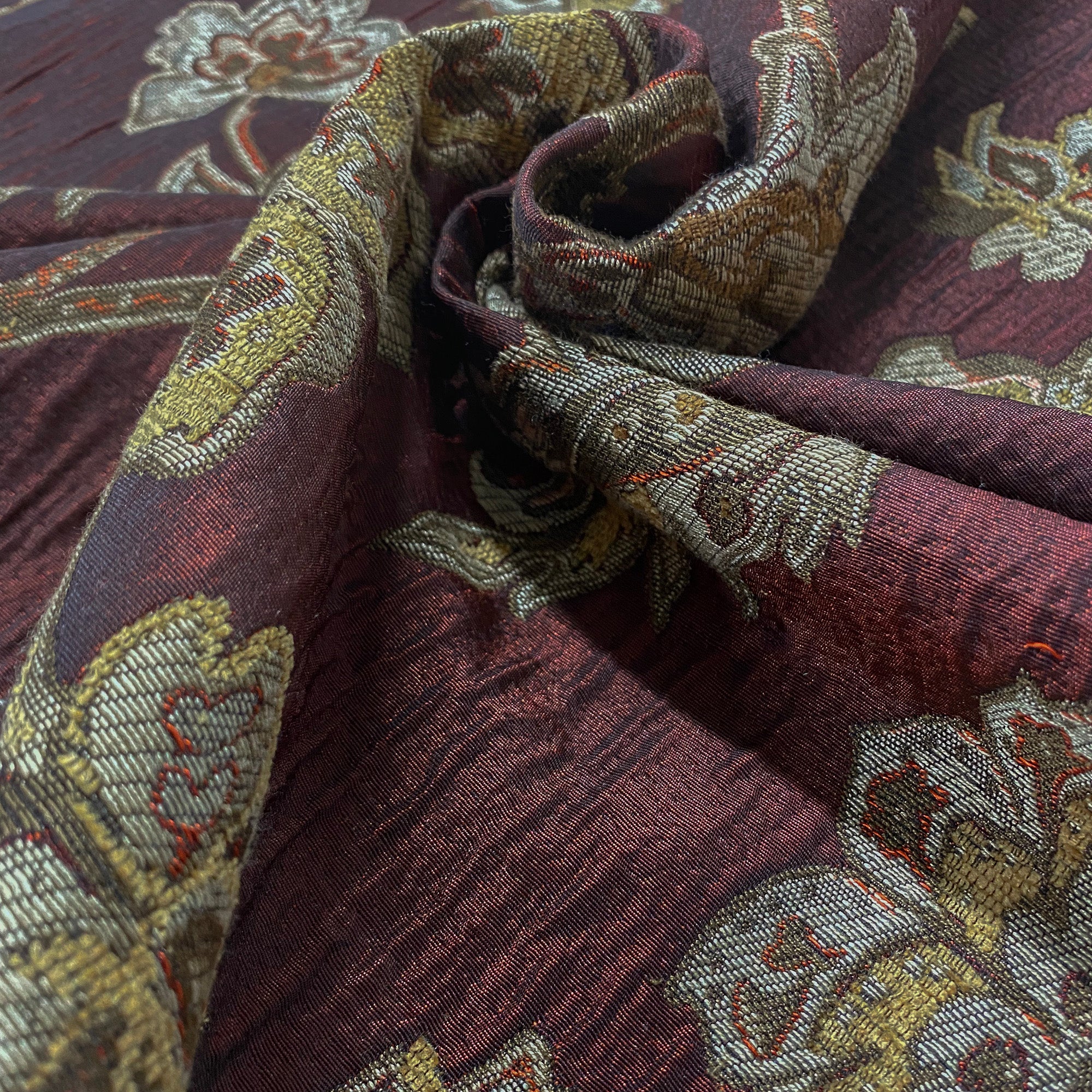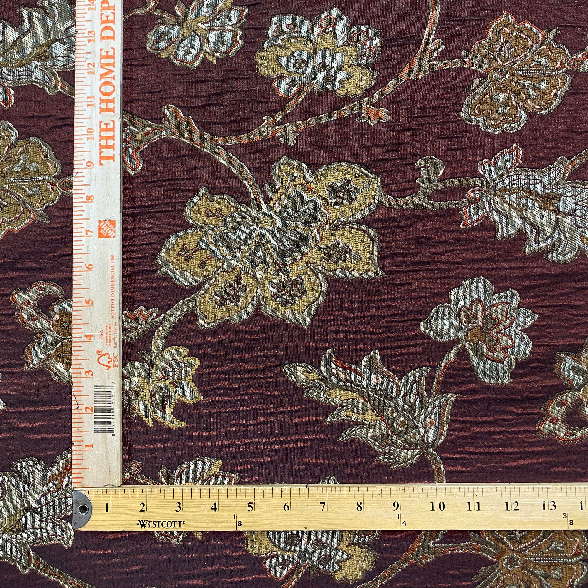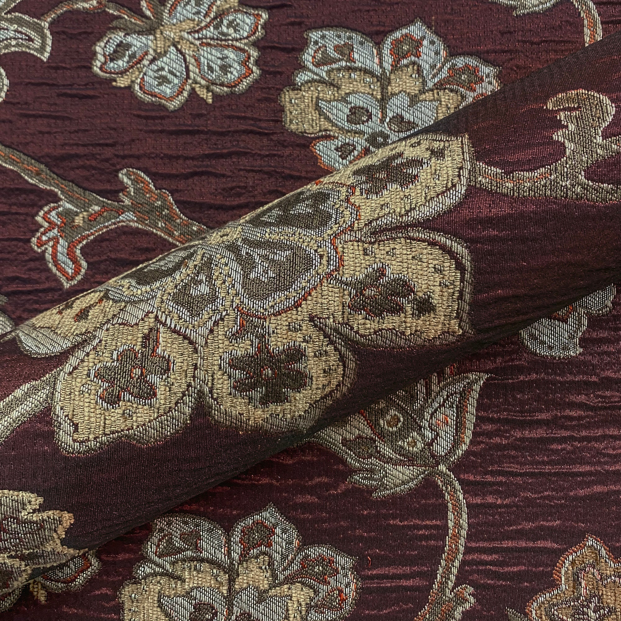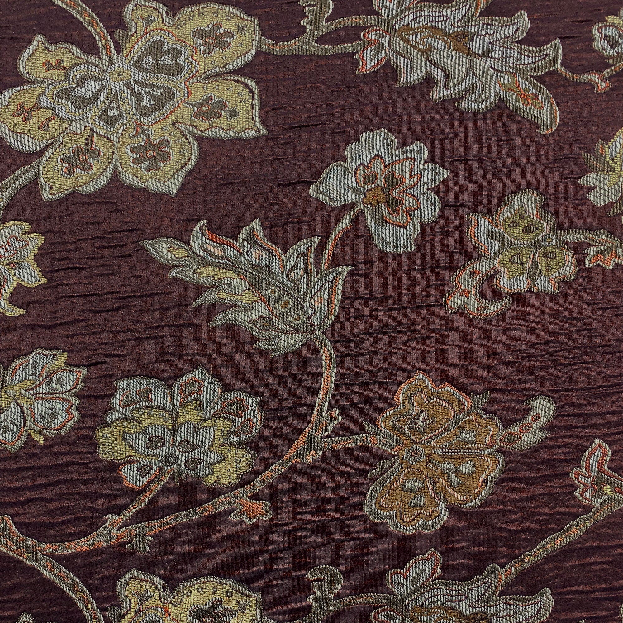 Kyoto Merlot Floral Brocade Upholstery Fabric 54"