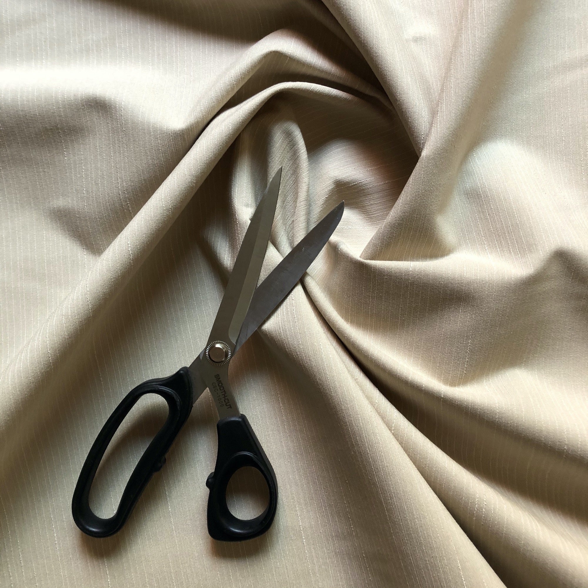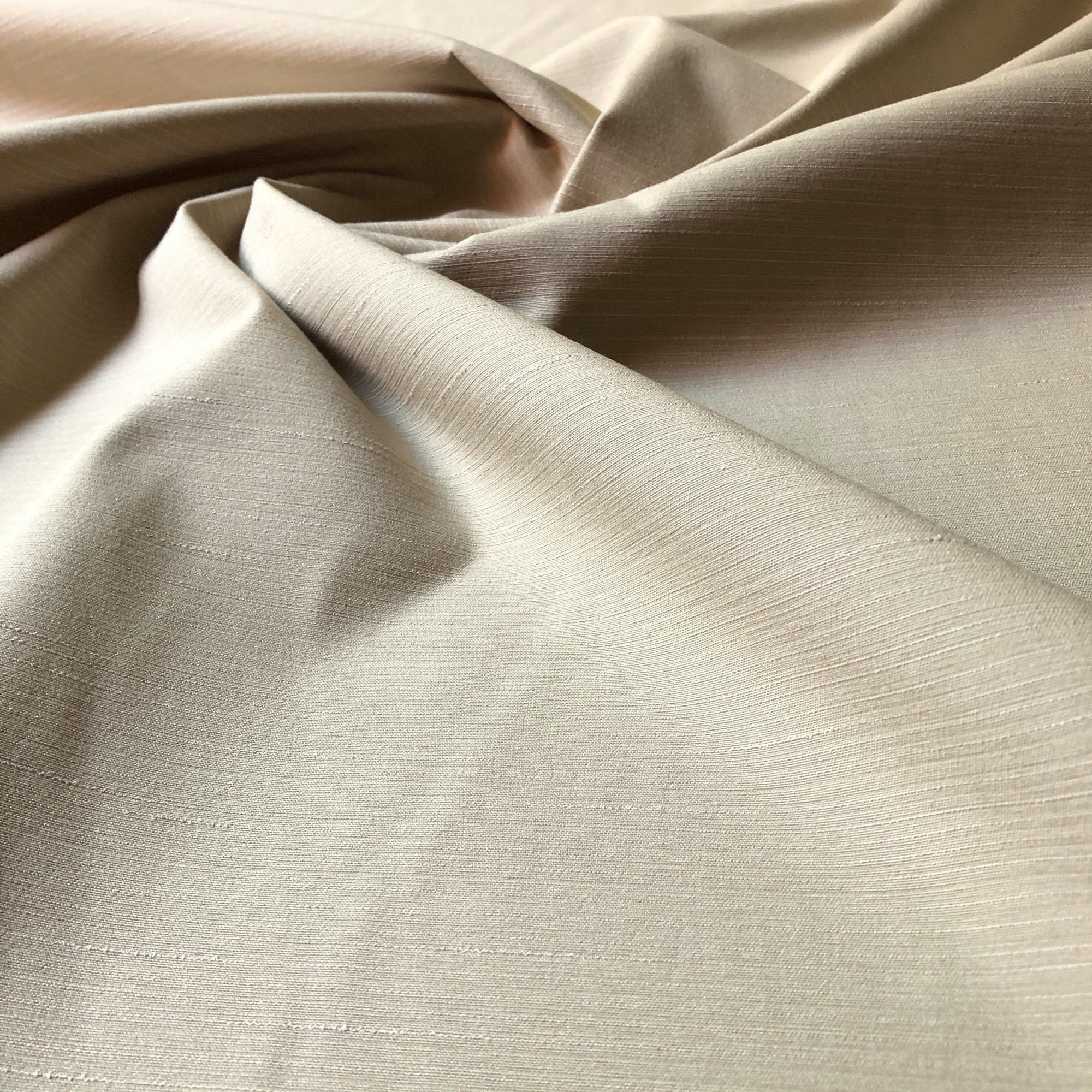 Contemporary cream-colored dupiponi silk fabric with subtle stripes.