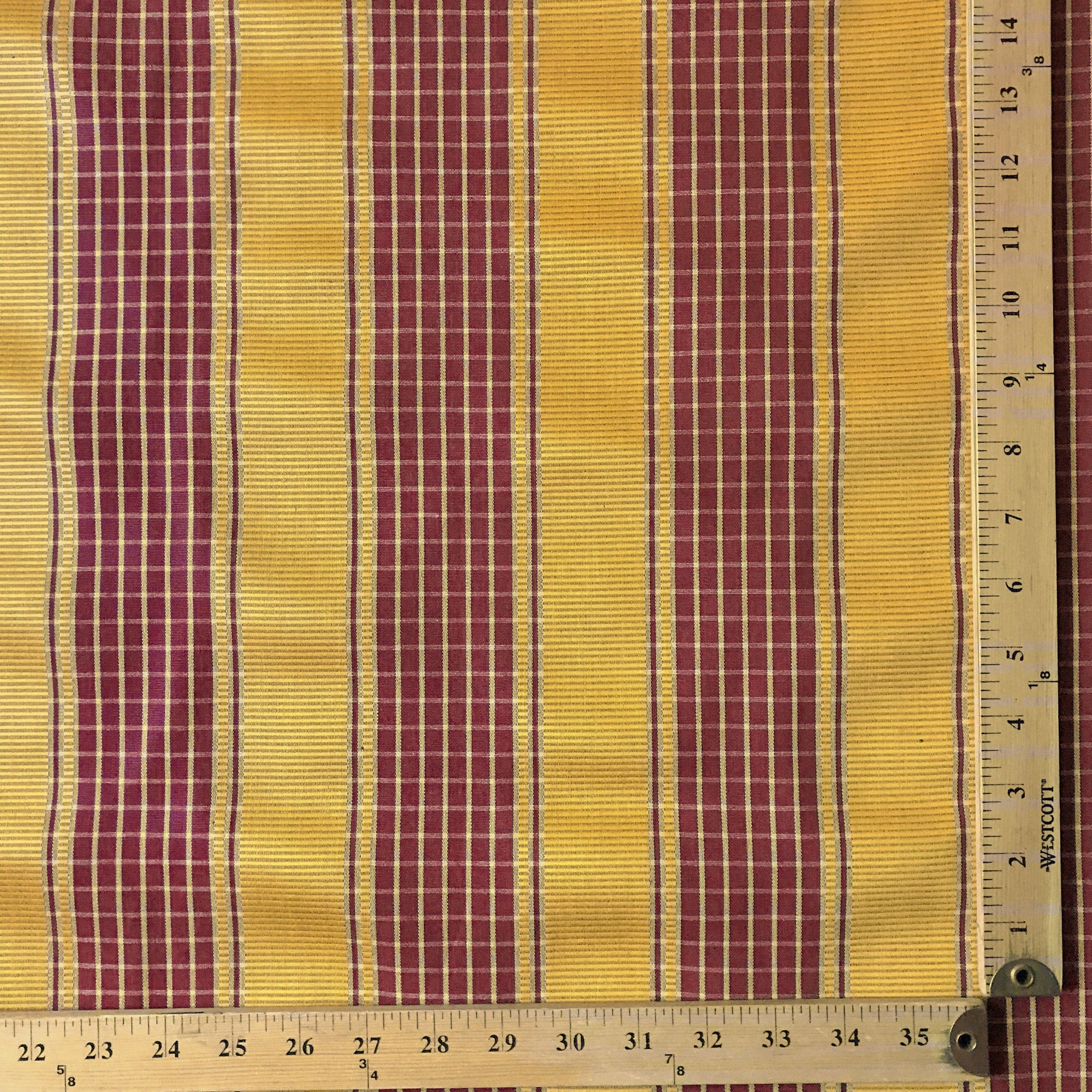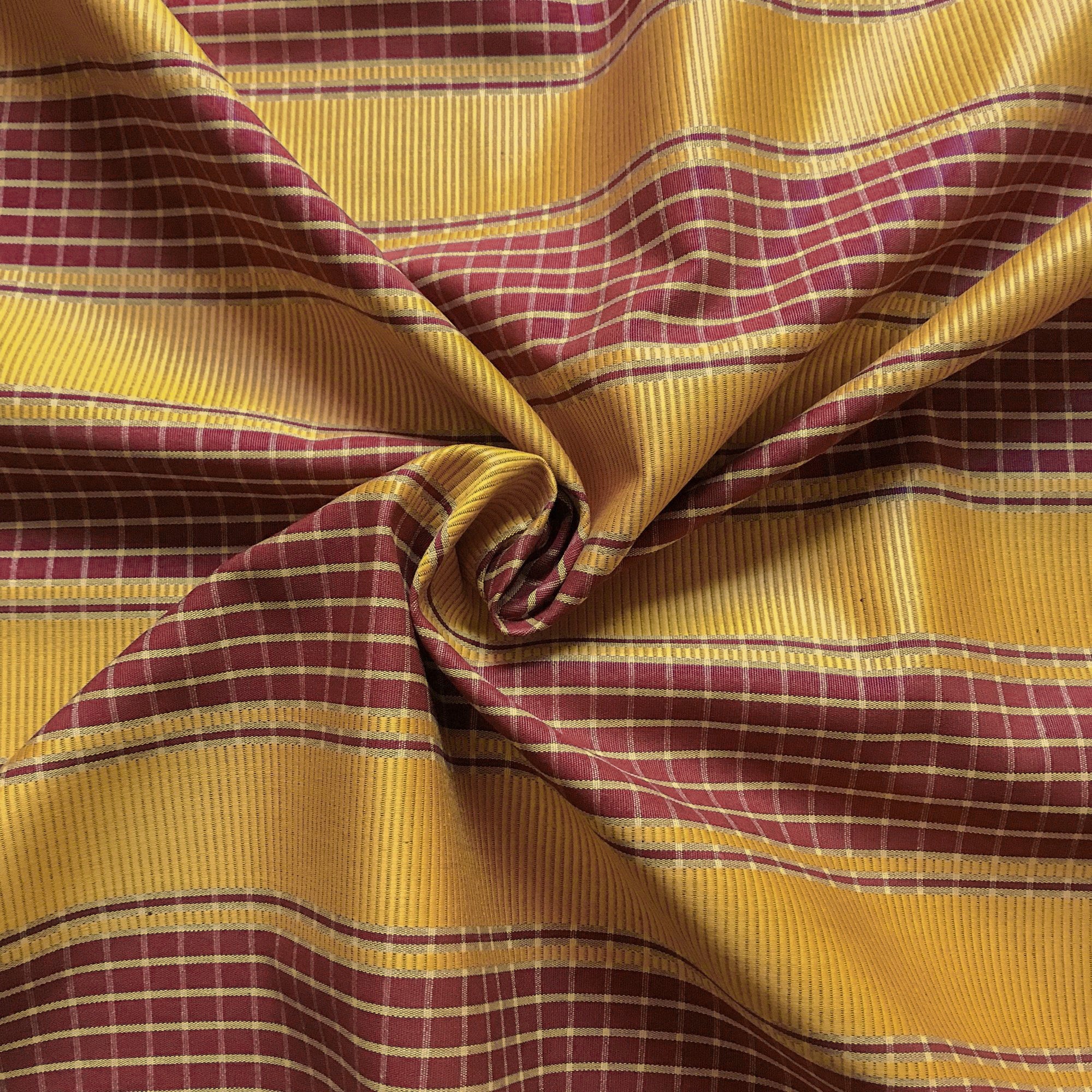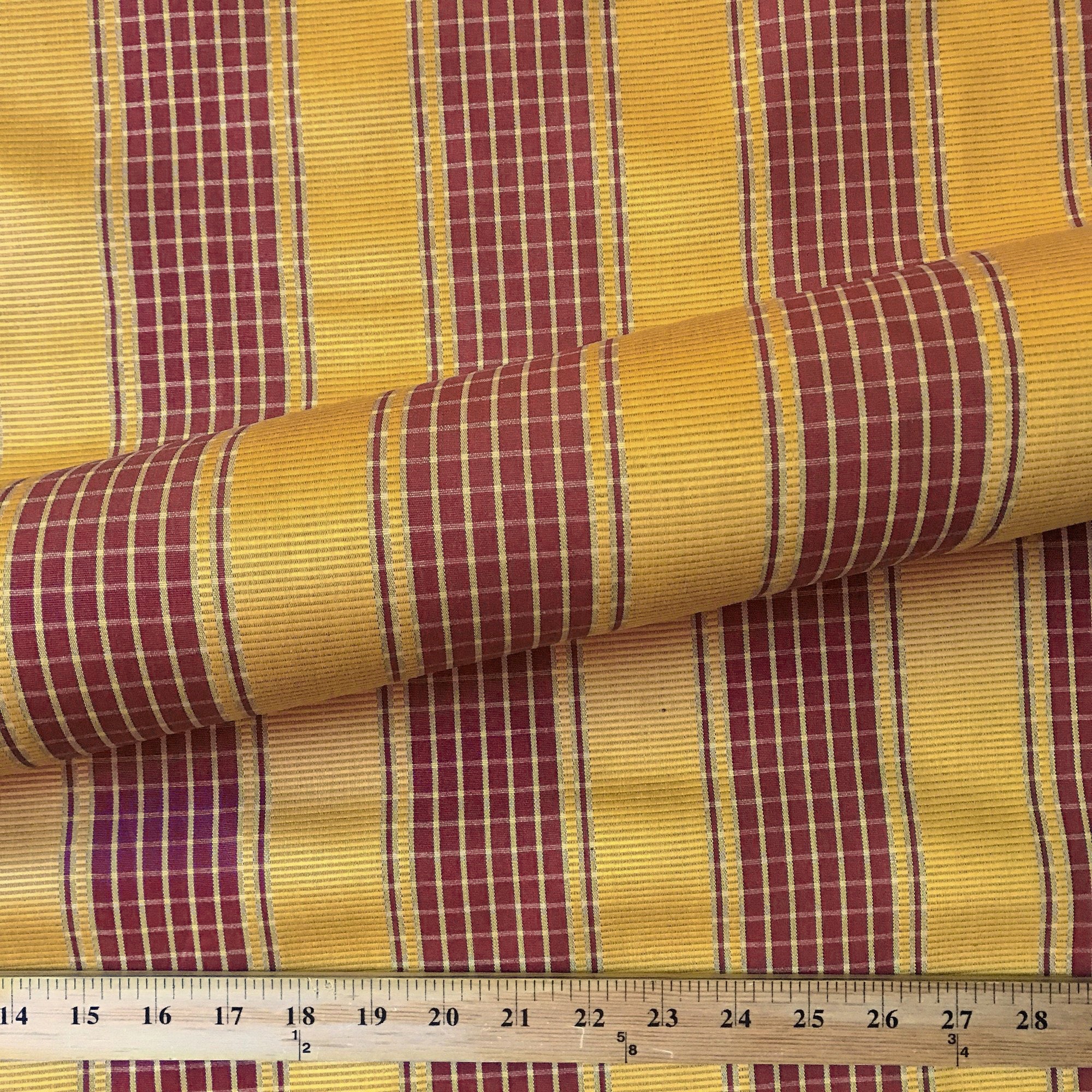 Scarlet and Gold Traditional Check Striped Upholstery Fabric 54"