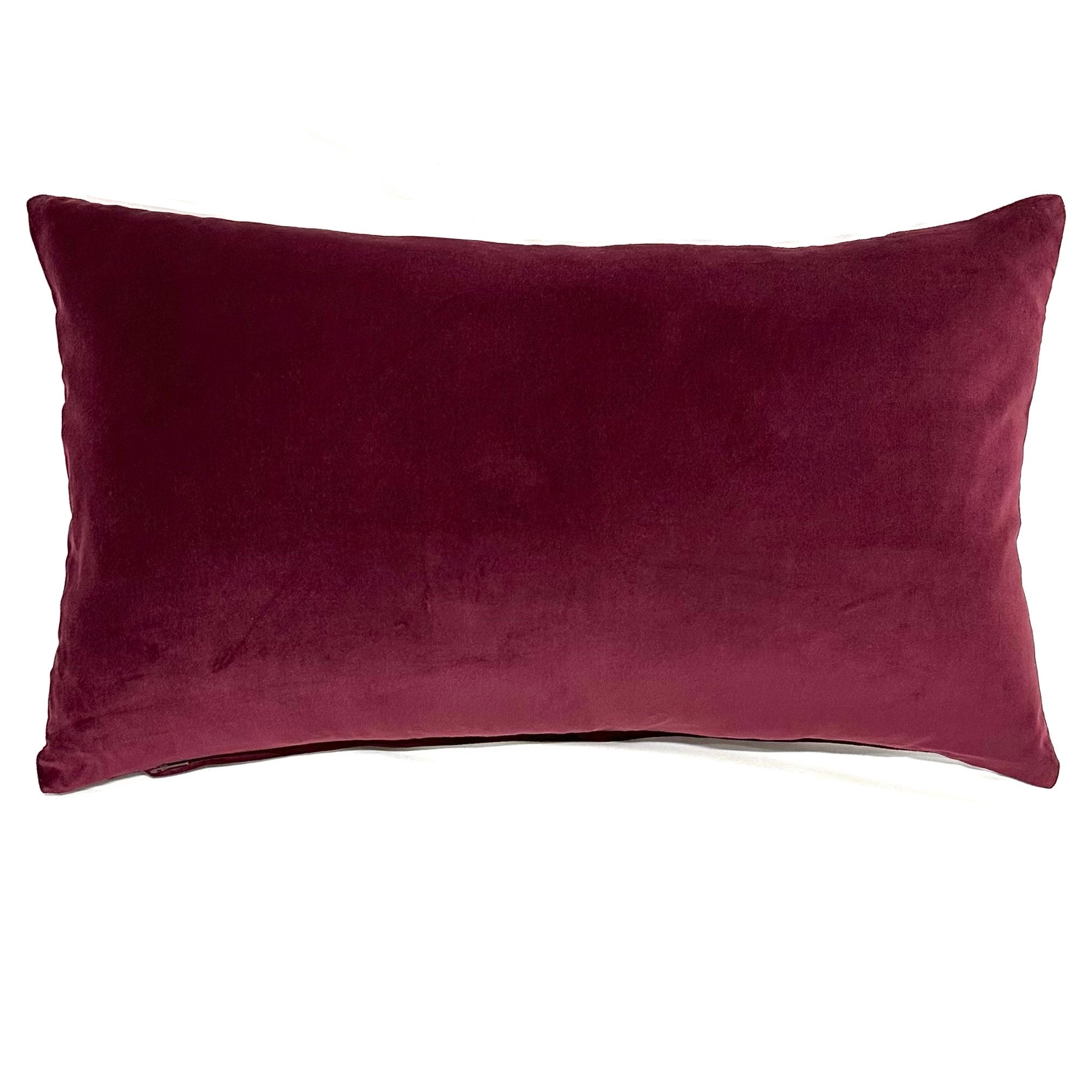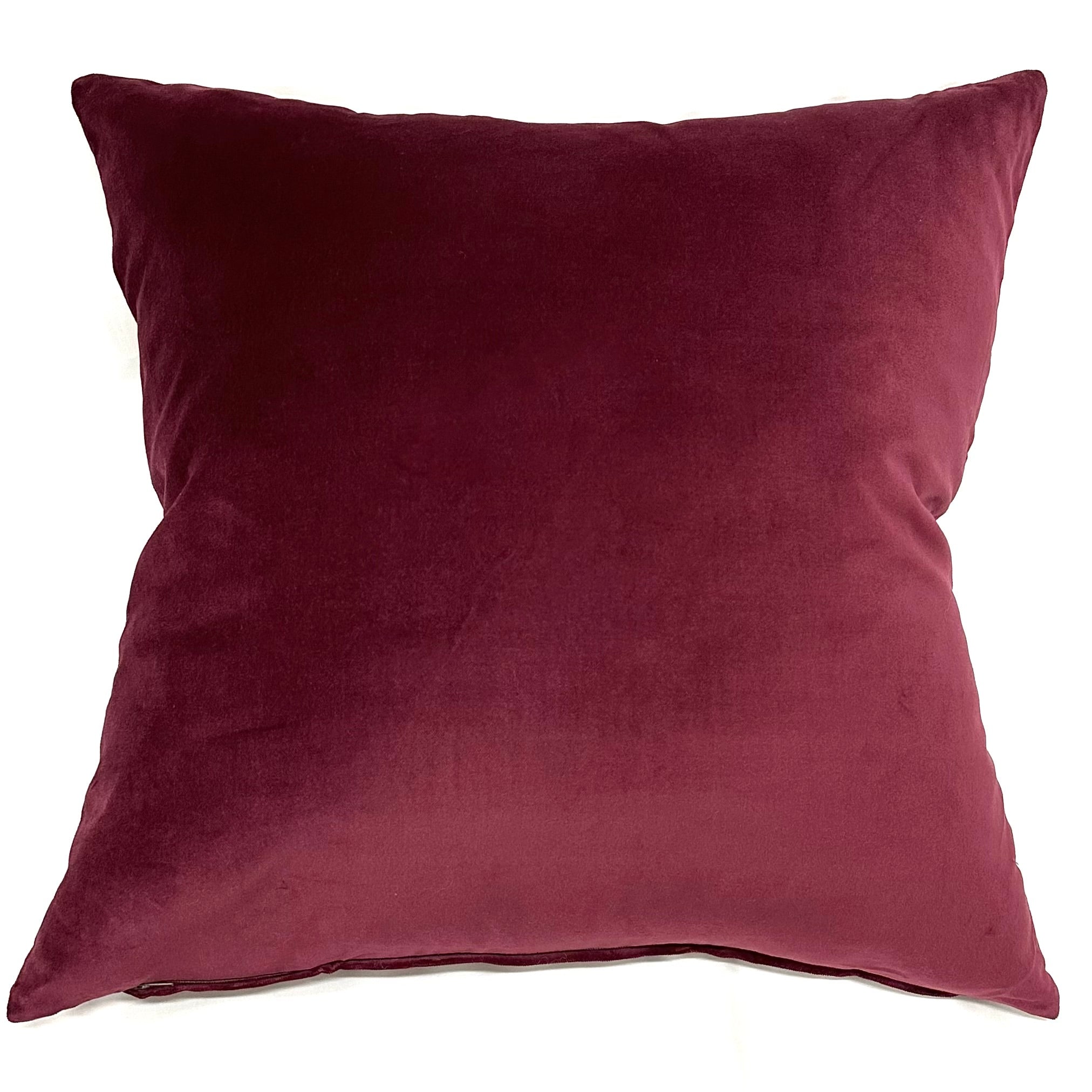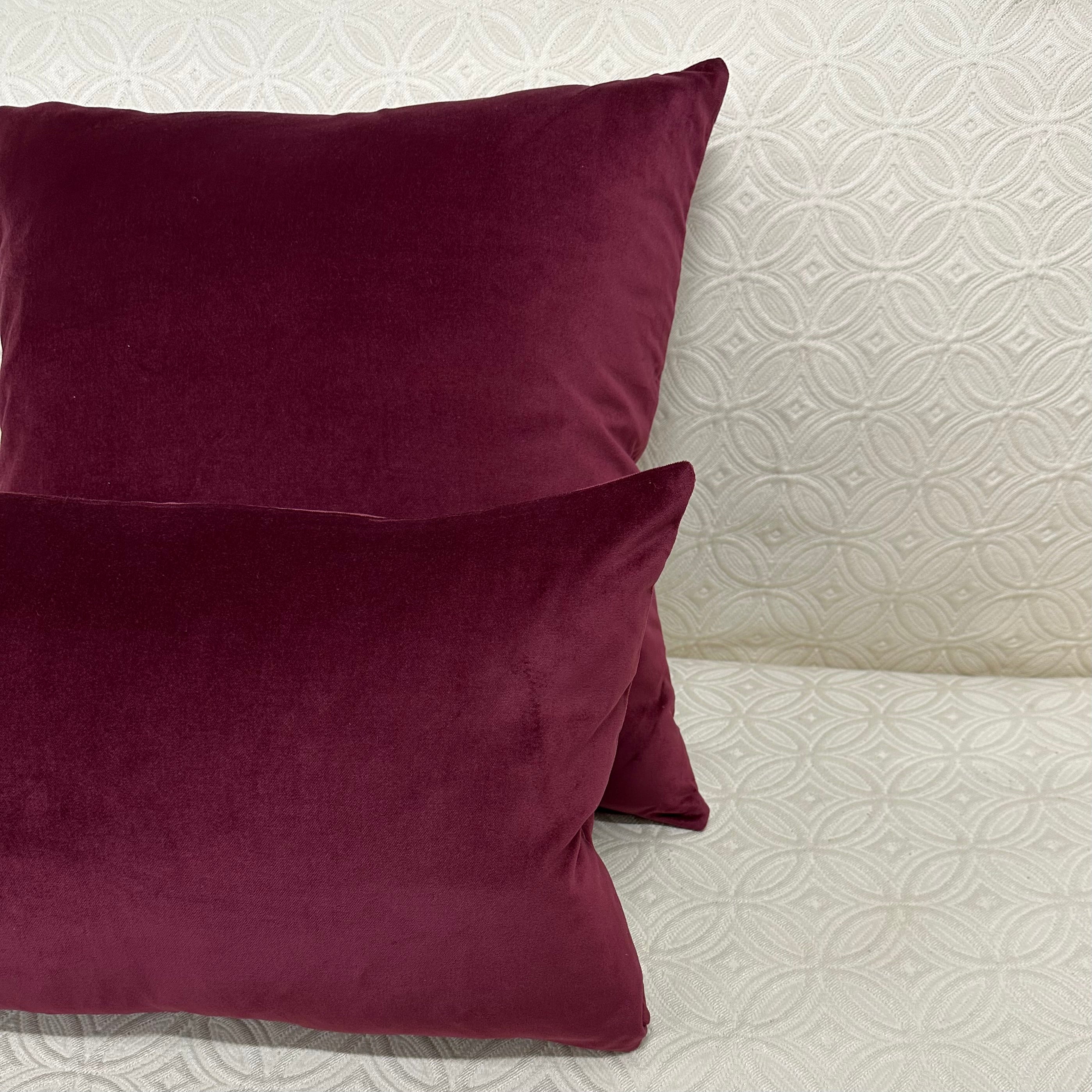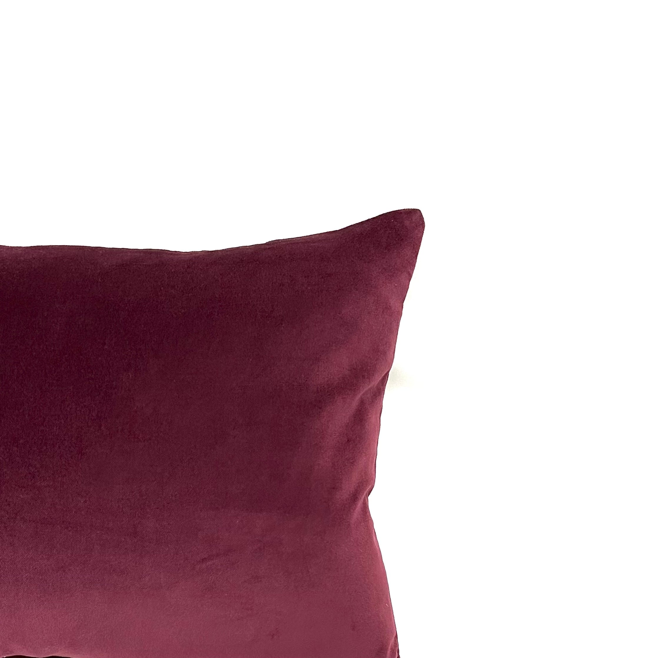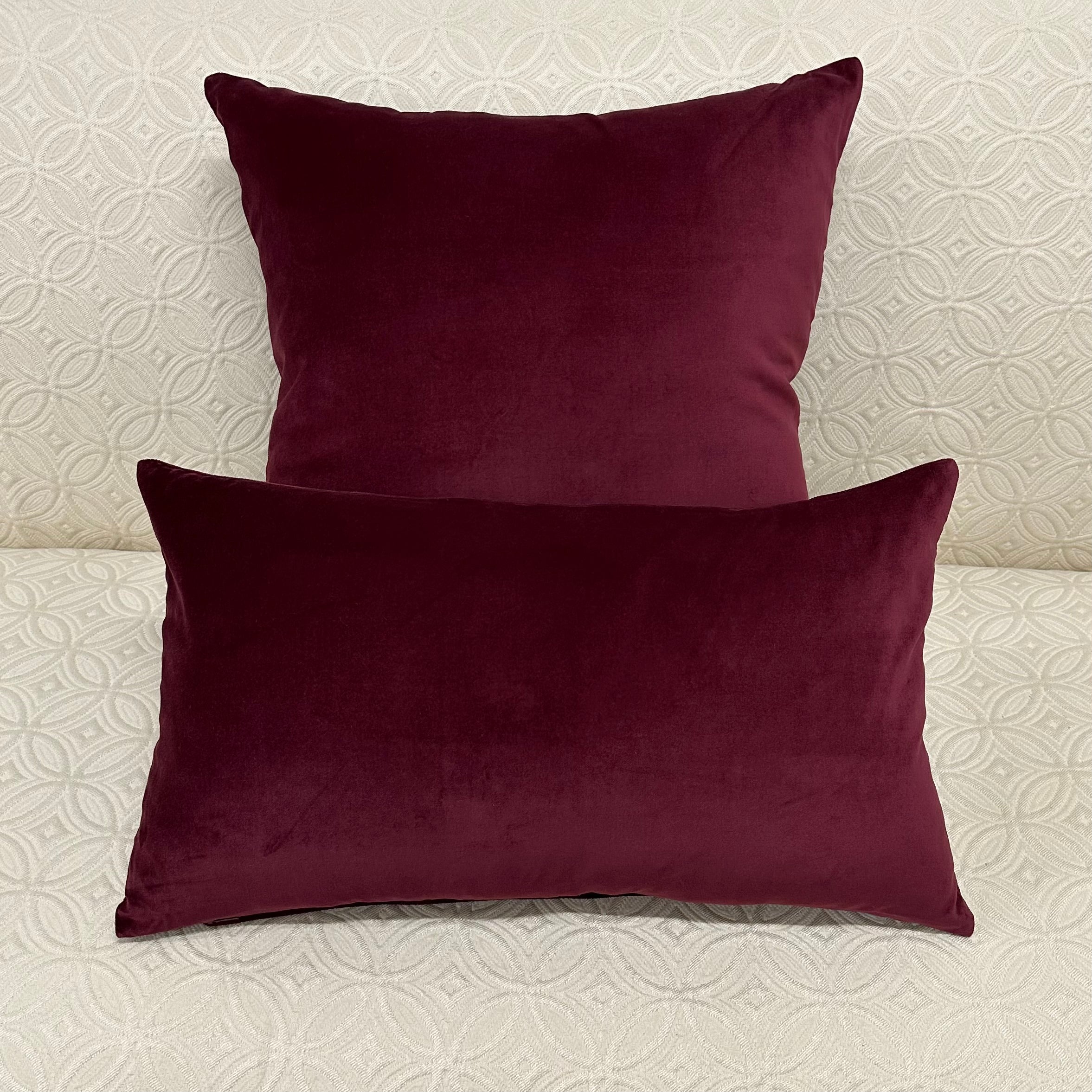 • Velveteen decorative pillow cover with a solid pattern in elegant burgundy