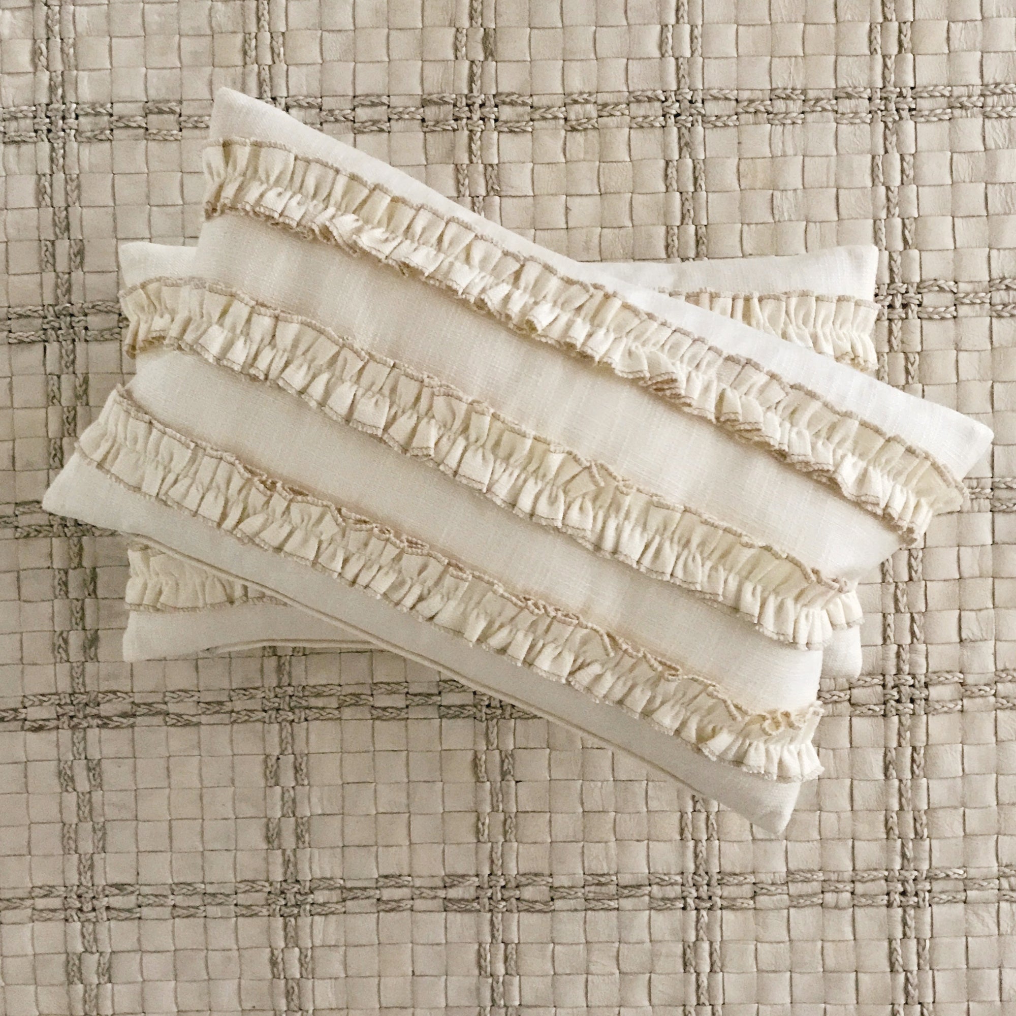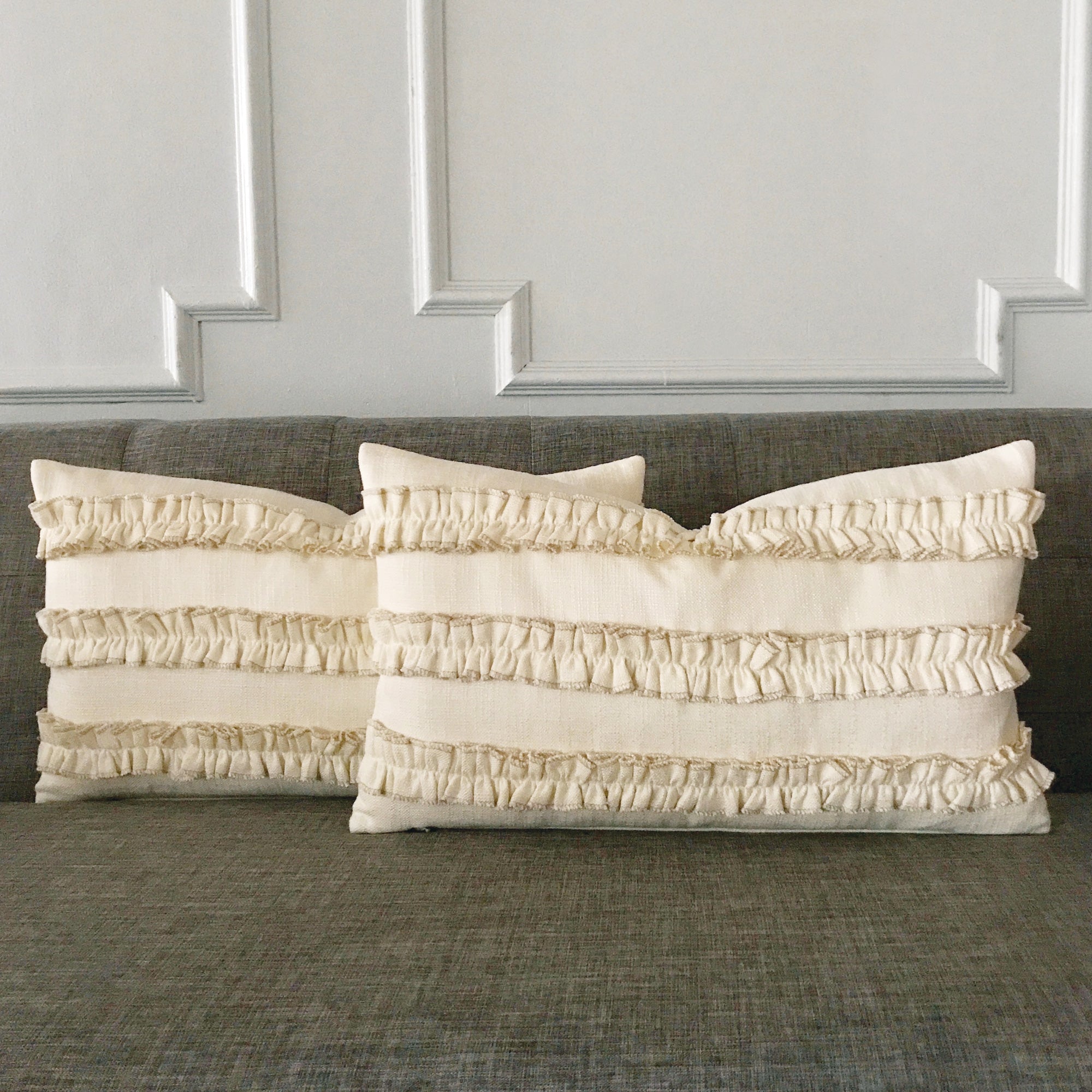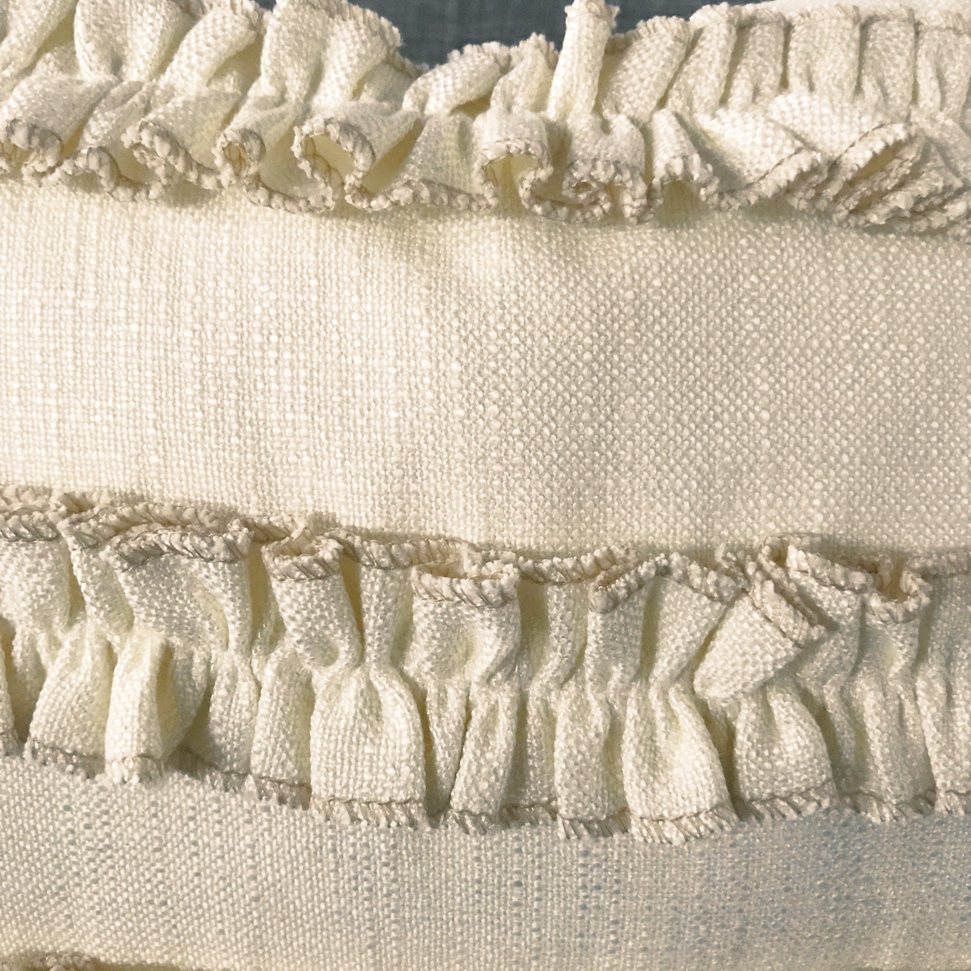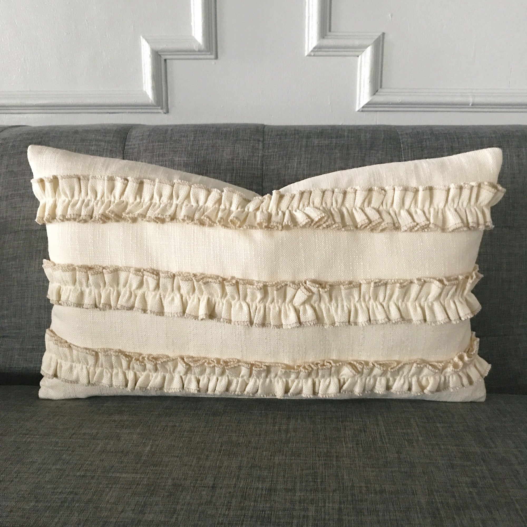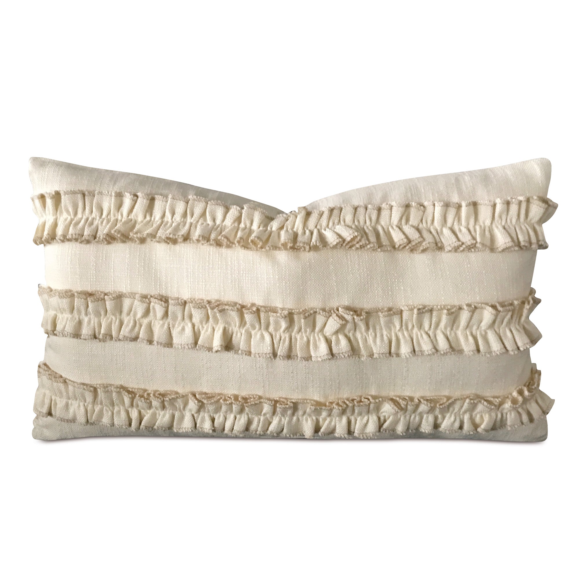 Cream Ruffled Luxury Woven Lumbar Pillow Cover 13x22