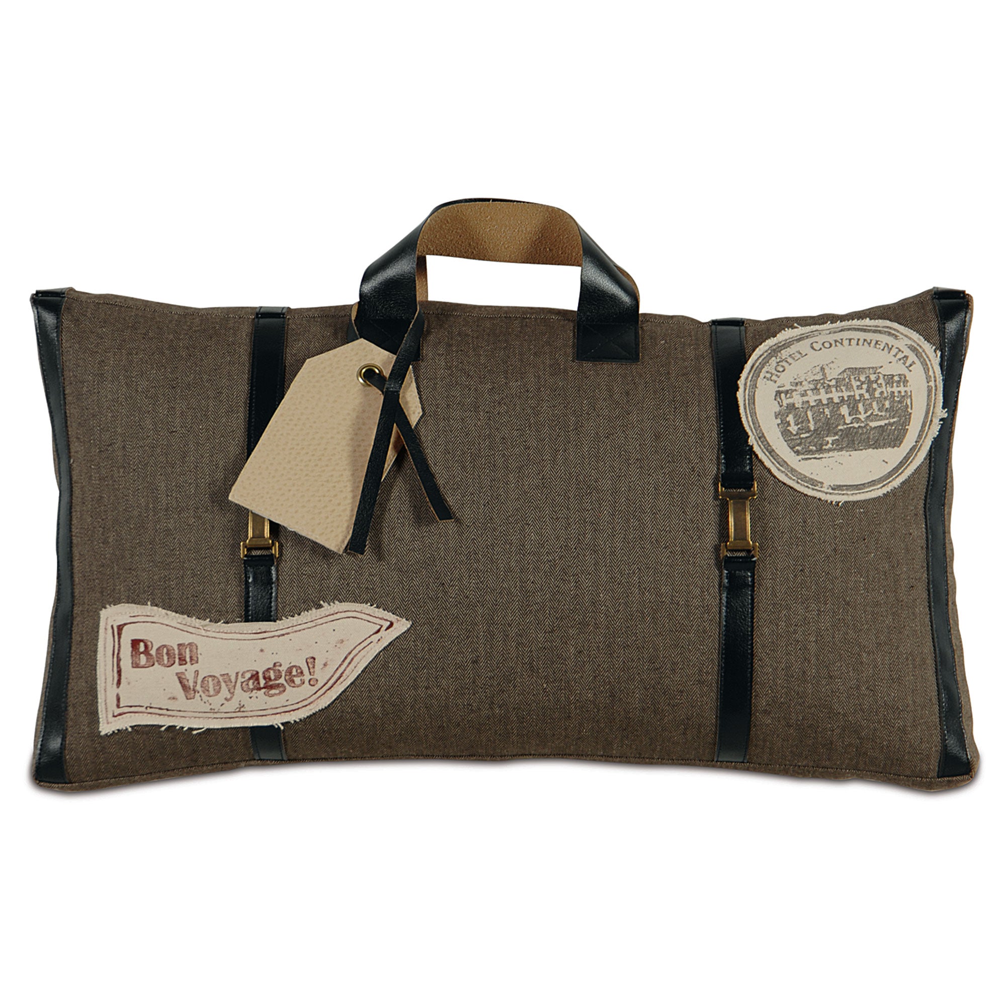 - Faux luggage with leather strap applique