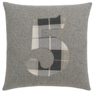 - Heather grey decorative pillow featuring a plaid "5" appliqué