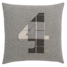 - Heather grey decorative pillow featuring a plaid "4" appliqué