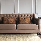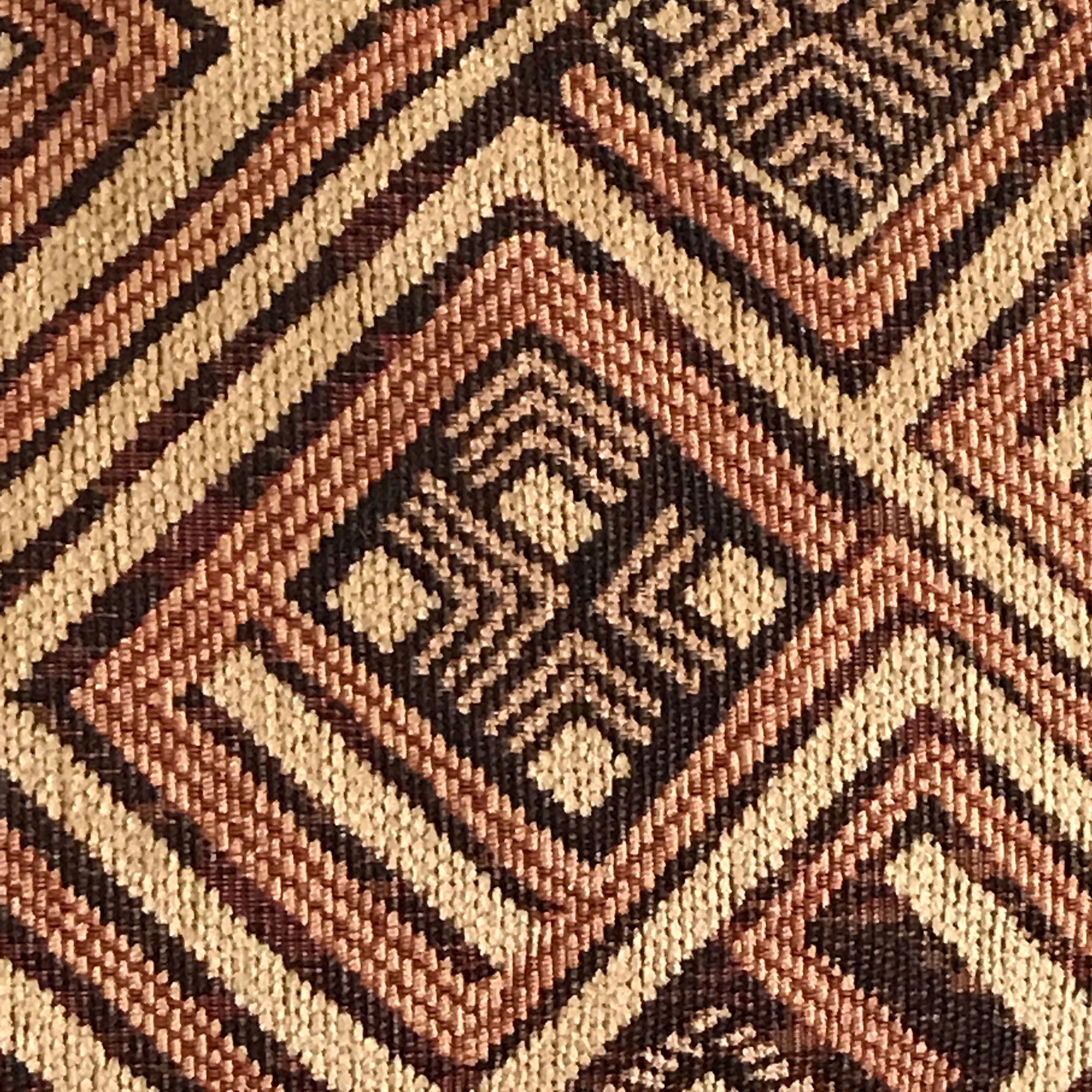 - Geometric pattern in earth tones brings warmth and a global-inspired look