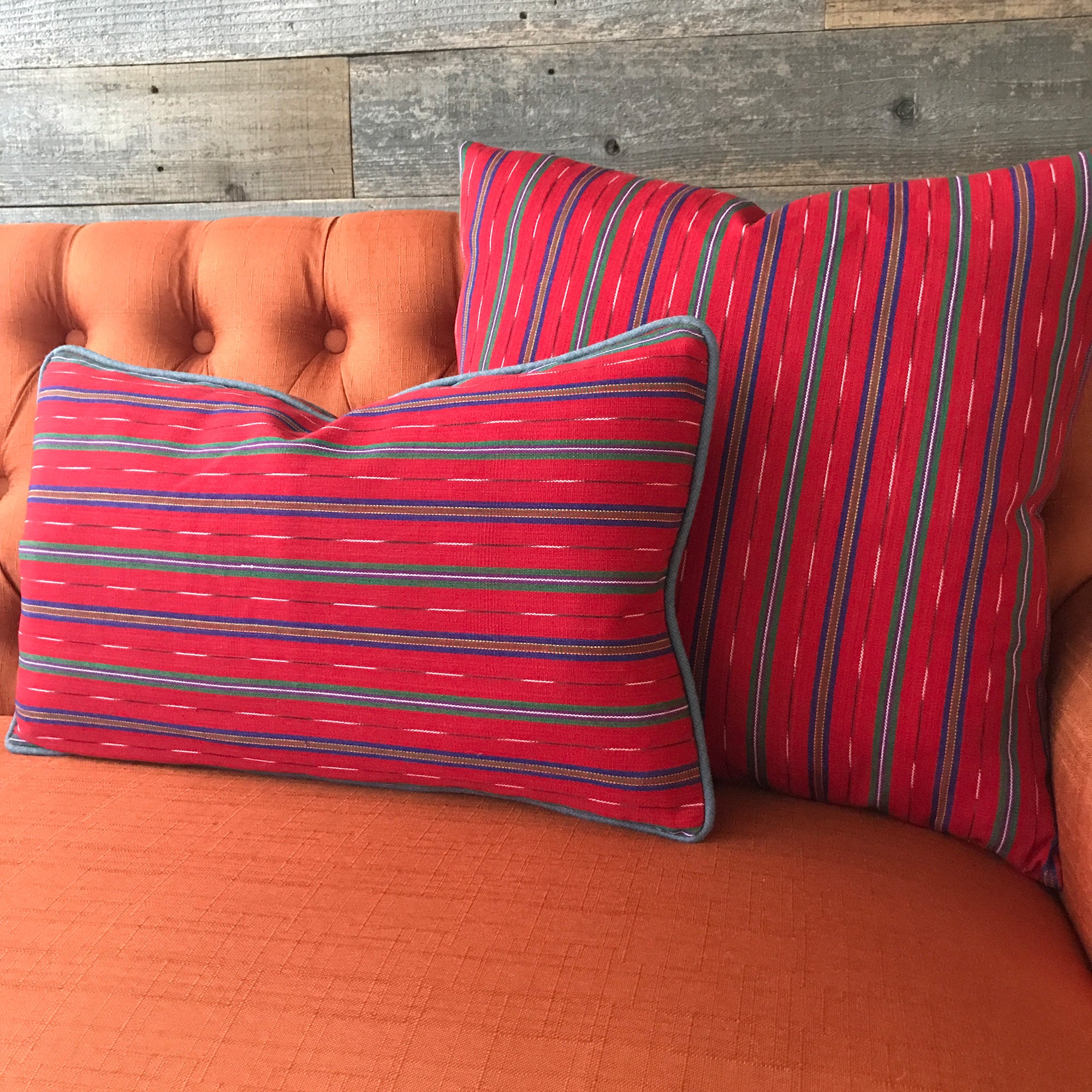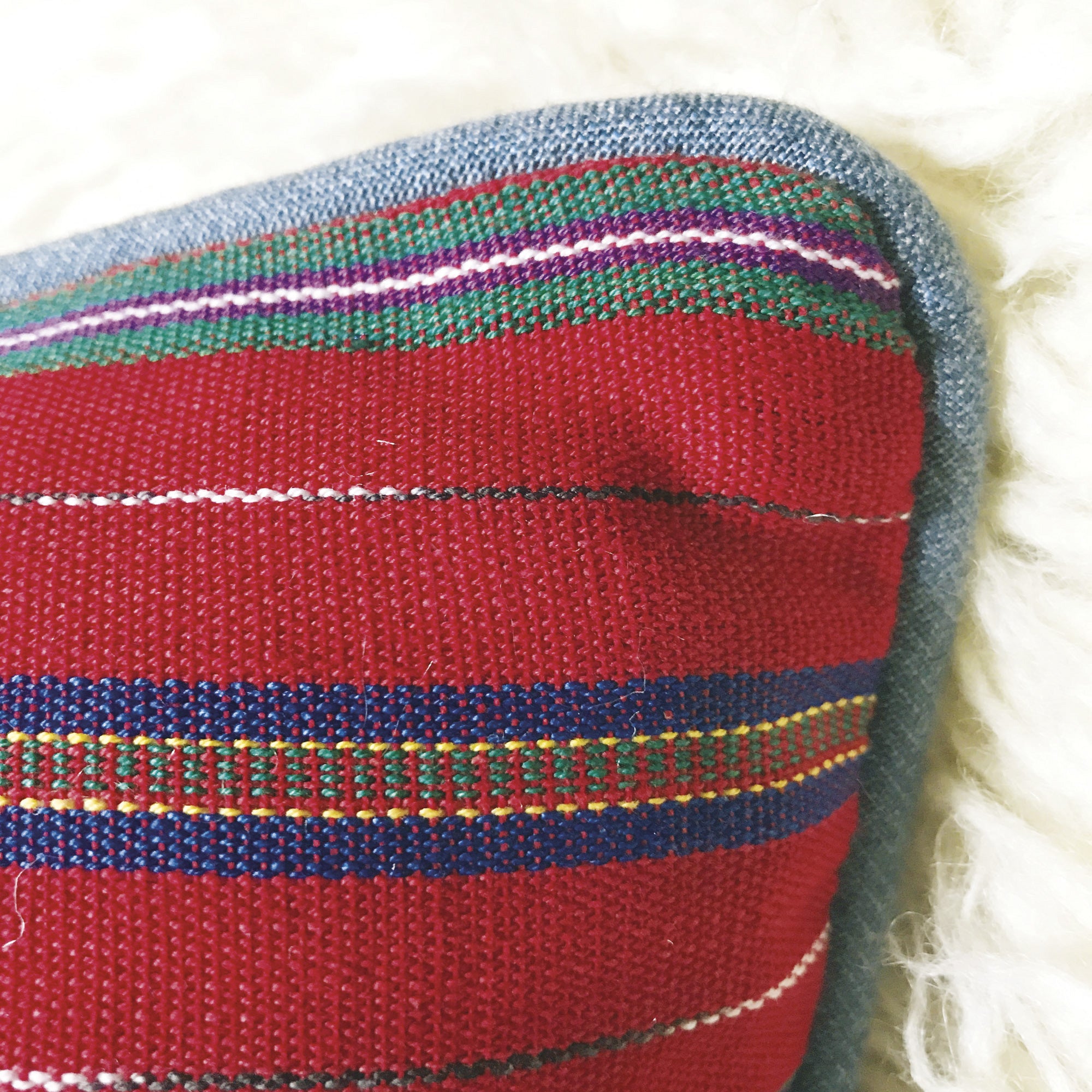 Red Southwestern Linen Welt Trim Lumbar Pillow Cover 13x22