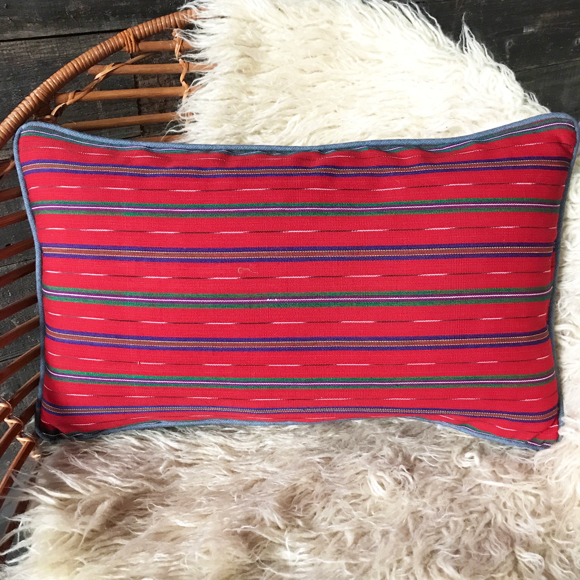 ⁌ Add a touch of southwestern charm to your space with the Red Southwestern Linen Welt Trim Lumbar Pillow Cover. This 13x22 pillow cover is crafted from durable linen and features a bold stripe pattern in rich reds, blues, greens, and white, offering a lively accent that brightens any decor. Perfect for adding rustic warmth to sofas, beds, or reading nooks, this pillow cover blends seamlessly into southwestern, bohemian, or eclectic interiors.