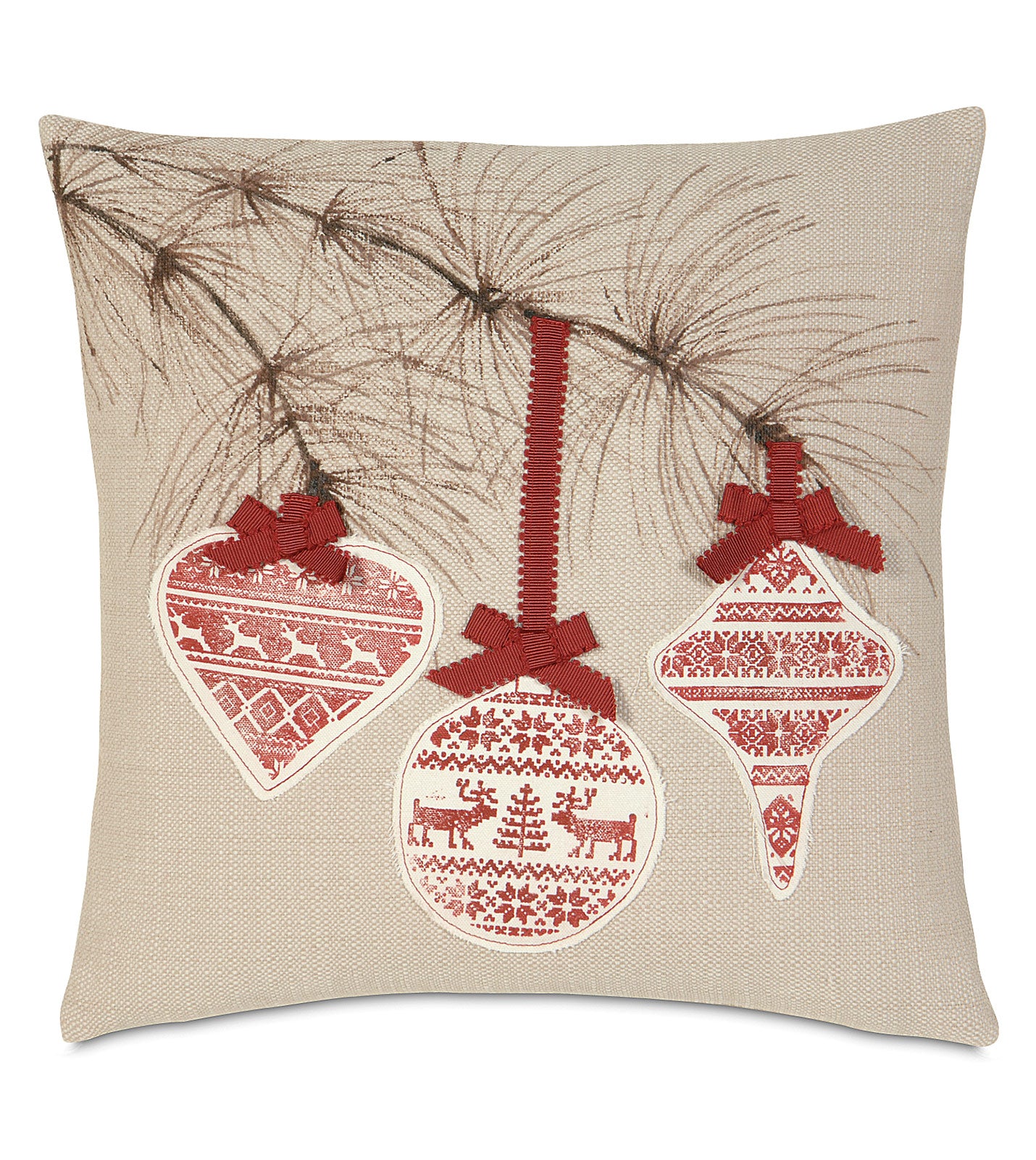 Nordic Holidays Festive Ornaments Throw Pillow Cover 18x18