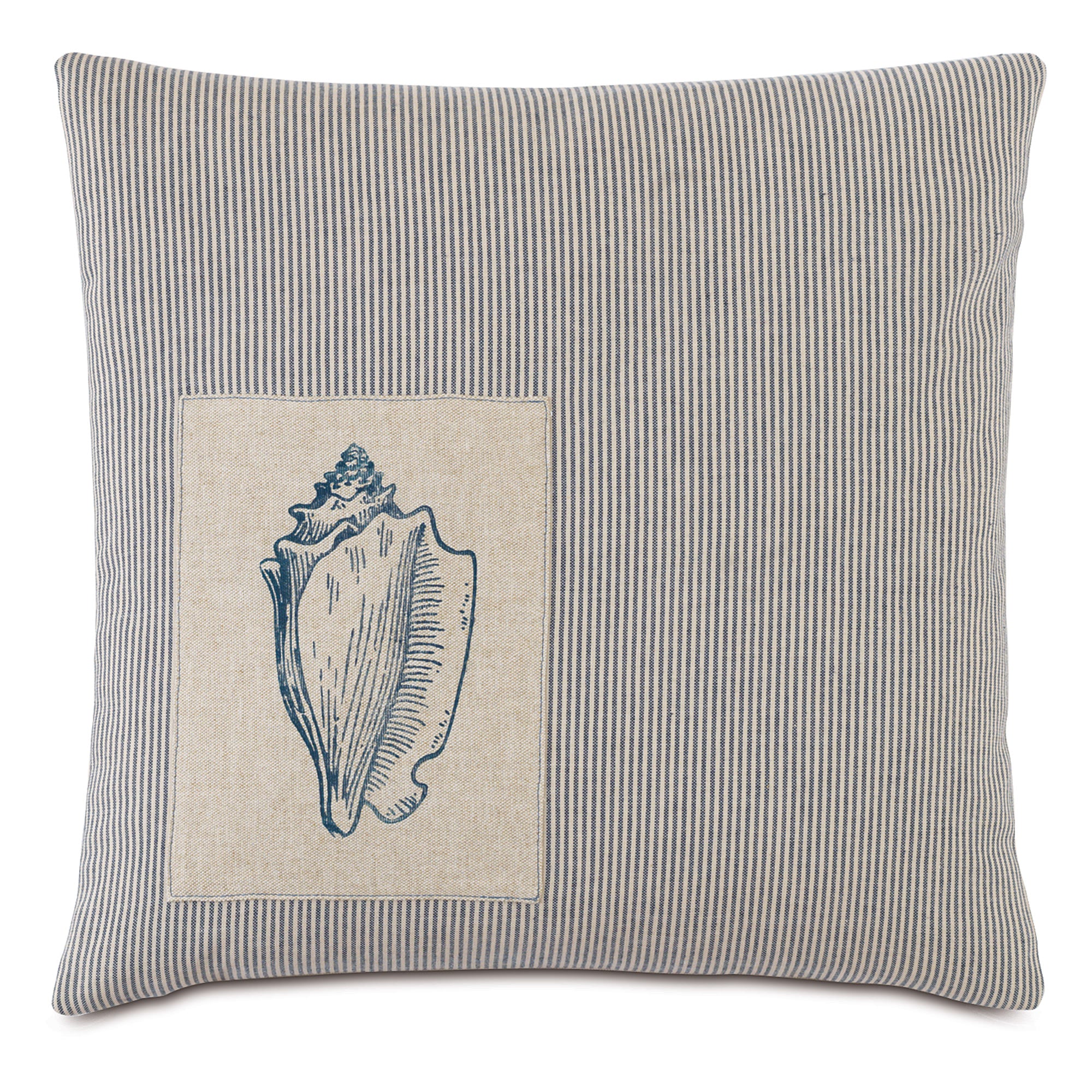 • Decorative pillow in stripe fabric with block printed seashell on face