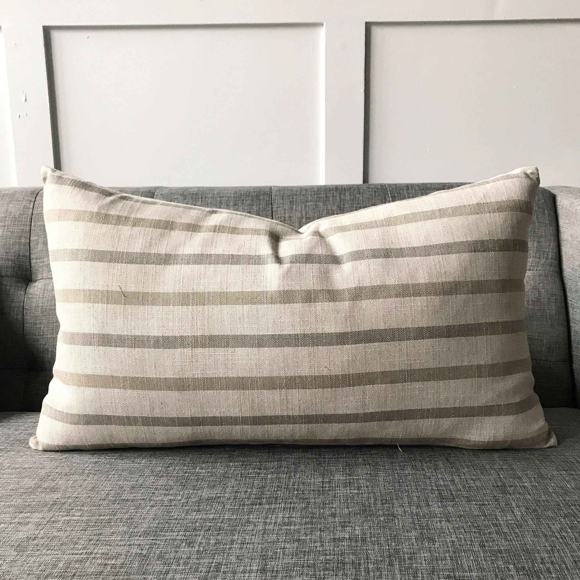 Urban Rustic Neutral Gray Wide Stripe Linen Luxury Lumbar Pillow Cover 15x26