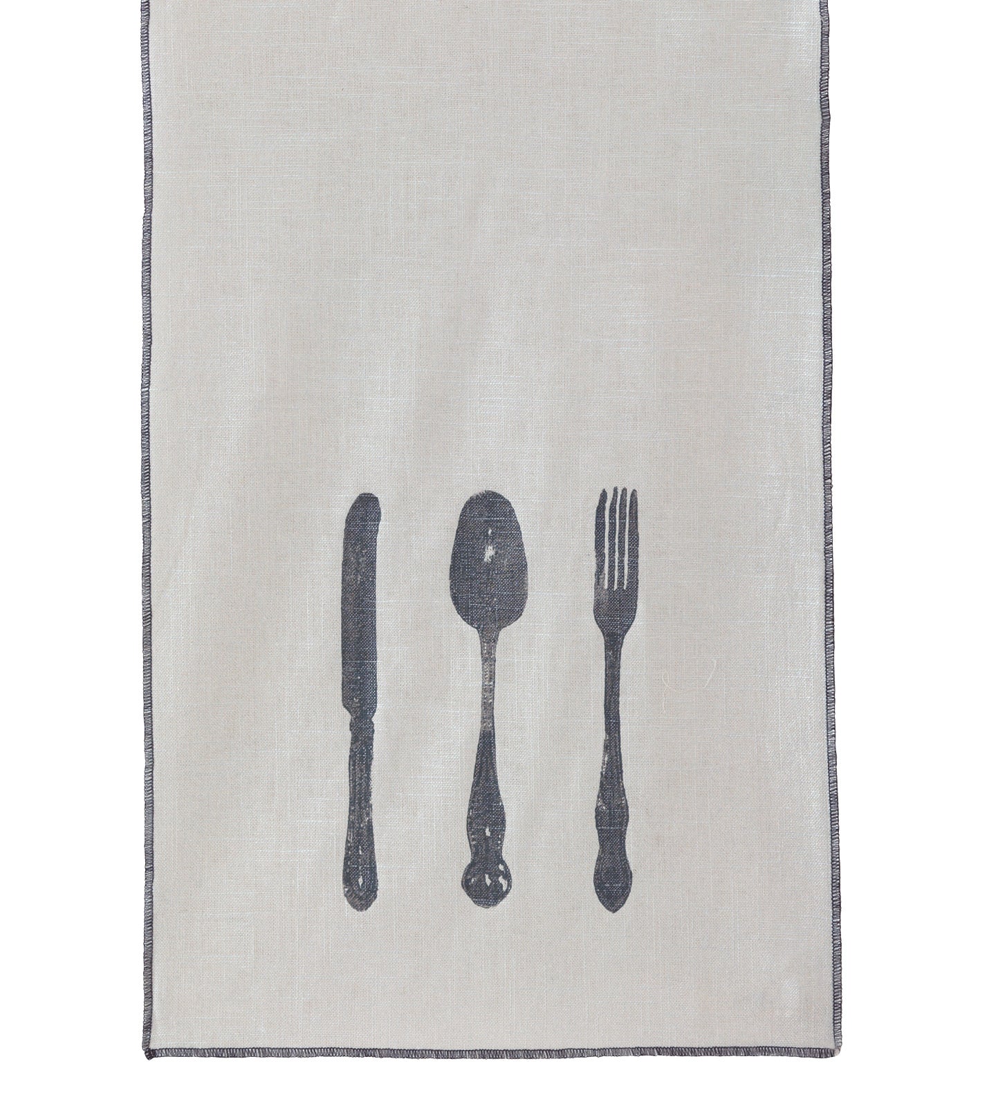 - Decorative block printed cutlery design on face in charcoal ink
