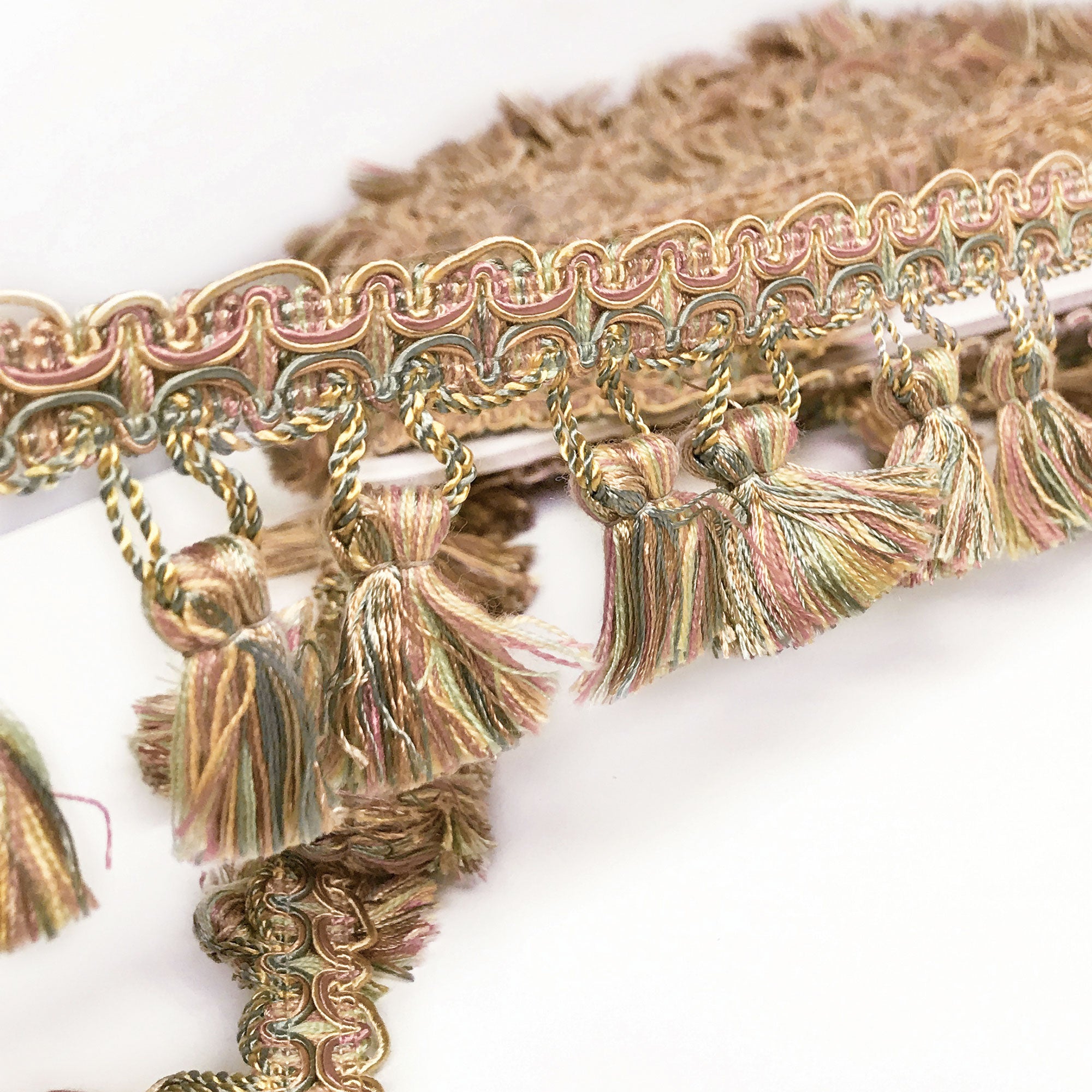 Lime and Salmon High Quality Decorative Tassel Trim by the yard