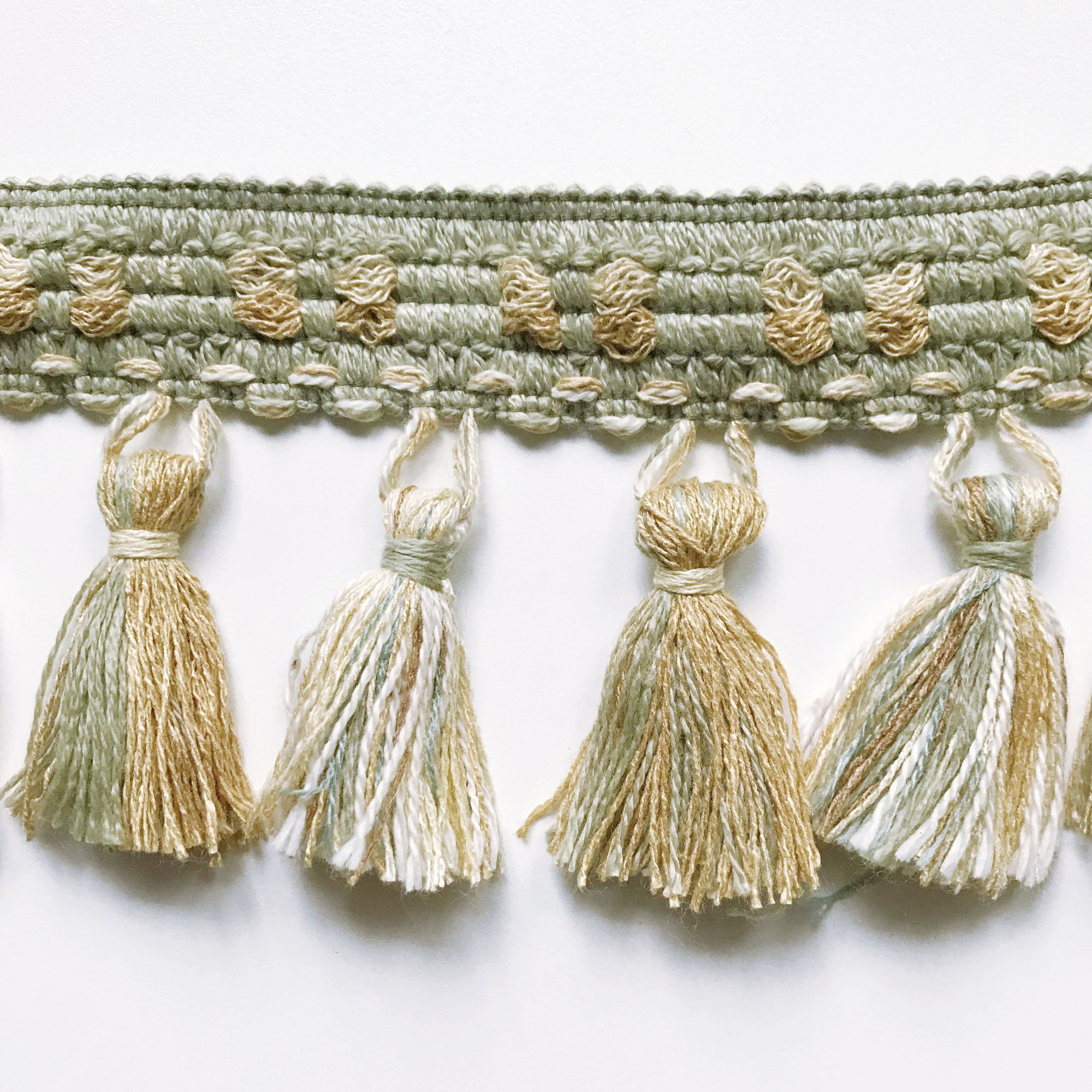 Lime and neutral High Quality Decorative Tassel Trim by the yard