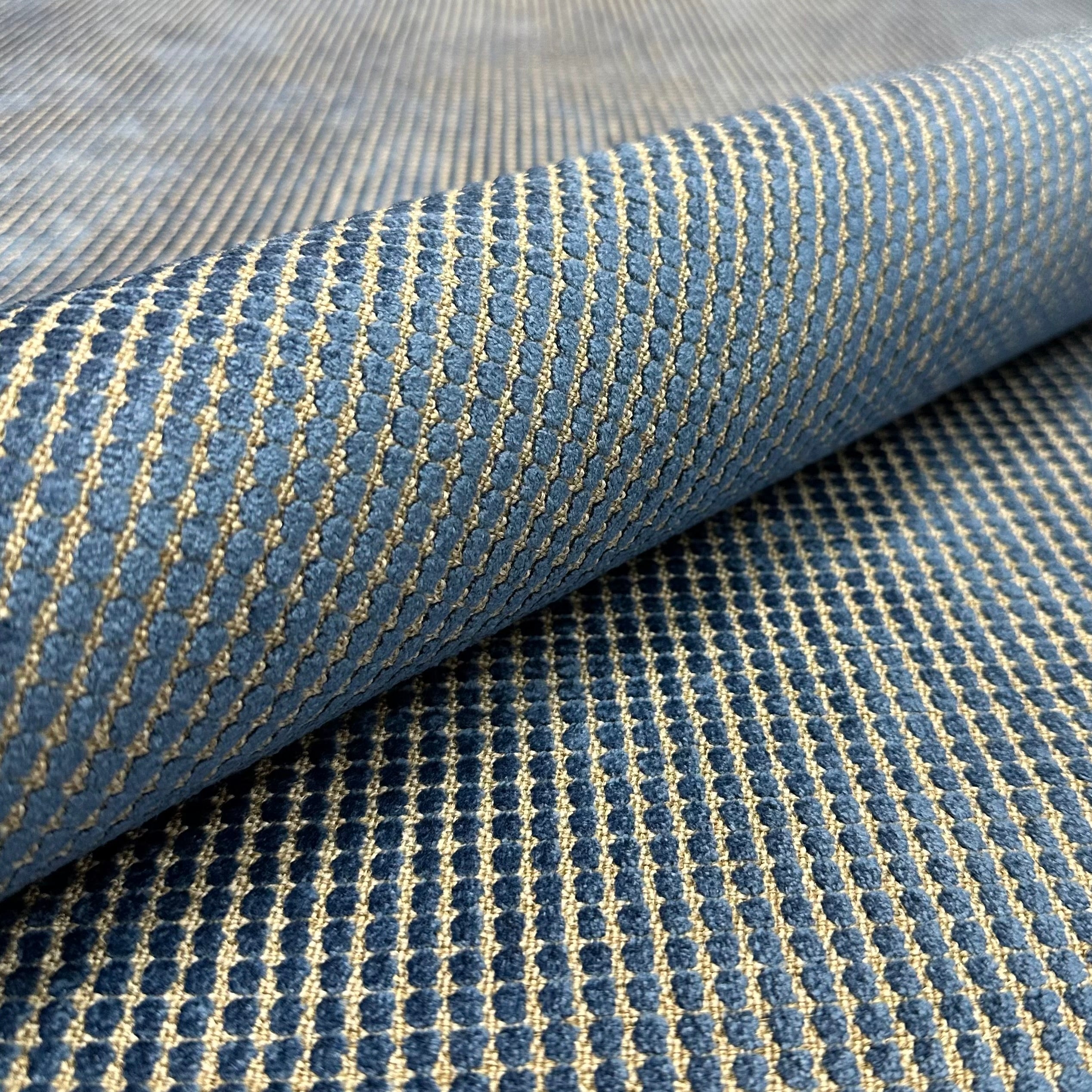 This luxurious Blue Modern Pinstripe Jacquard Upholstery Fabric 52 meets flair with versatility, offering the perfect personal touch for any Modern aesthetic. Designed and crafted by skilled textile artisans this fabric is made to last and never compromises on quality. All fabric is sold by the yard in 1-yard increments. Unfortunately, we do not accept returns on fabric orders but swatches are available.