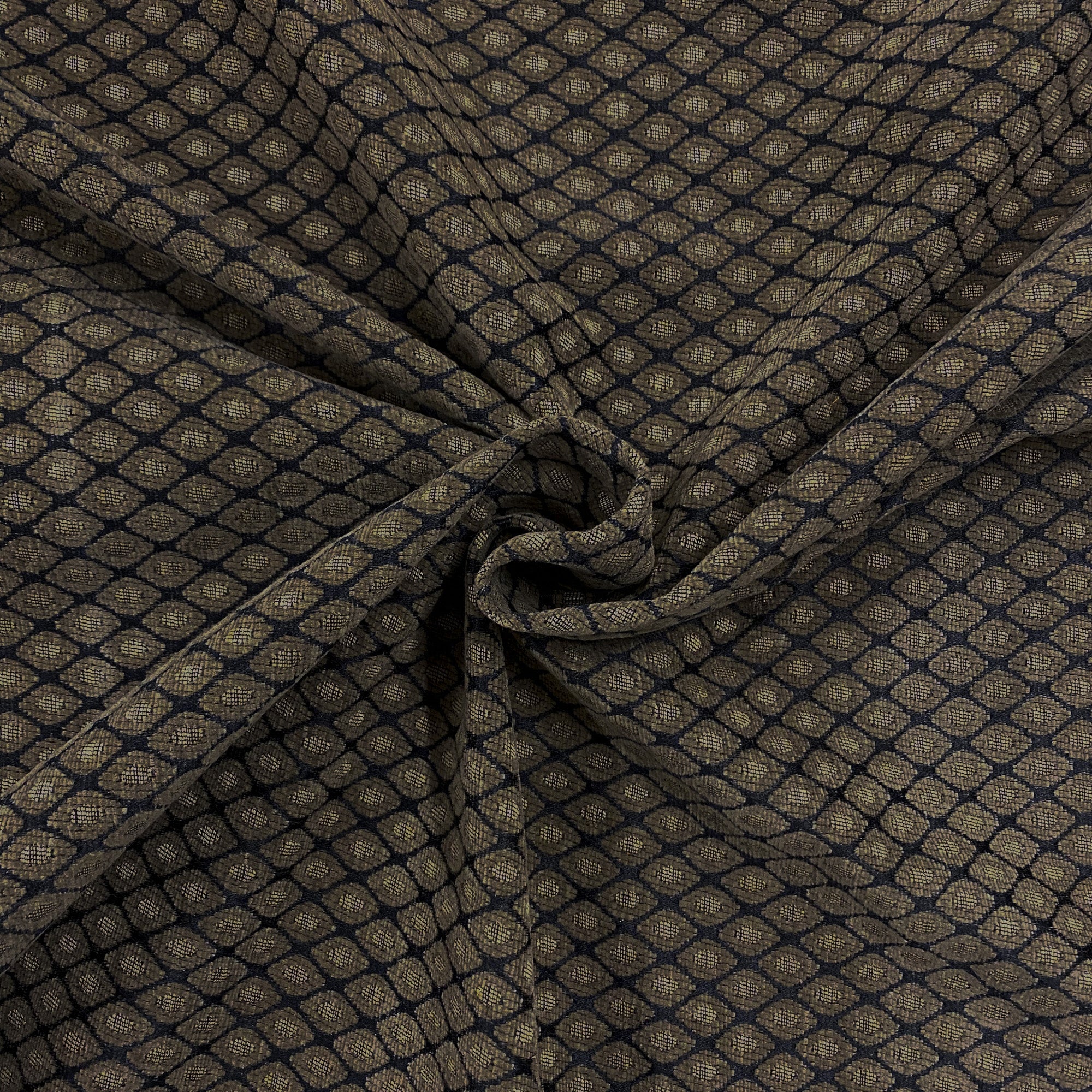 Weave forms small-scale bird's eye pattern in brown. Please note that the background is solid black, and not blue as it appears in the close-up image.