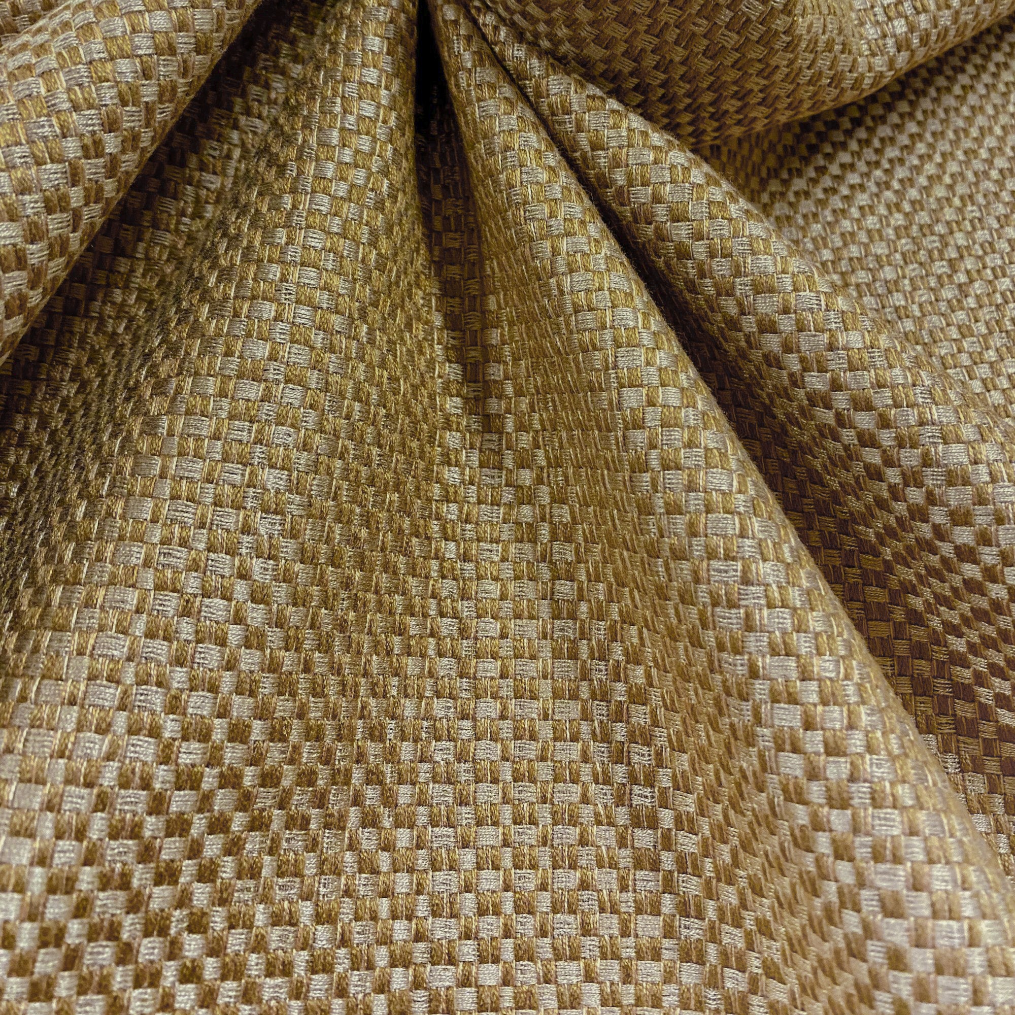 Textured basketweave upholstery fabric in teddy bear brown.