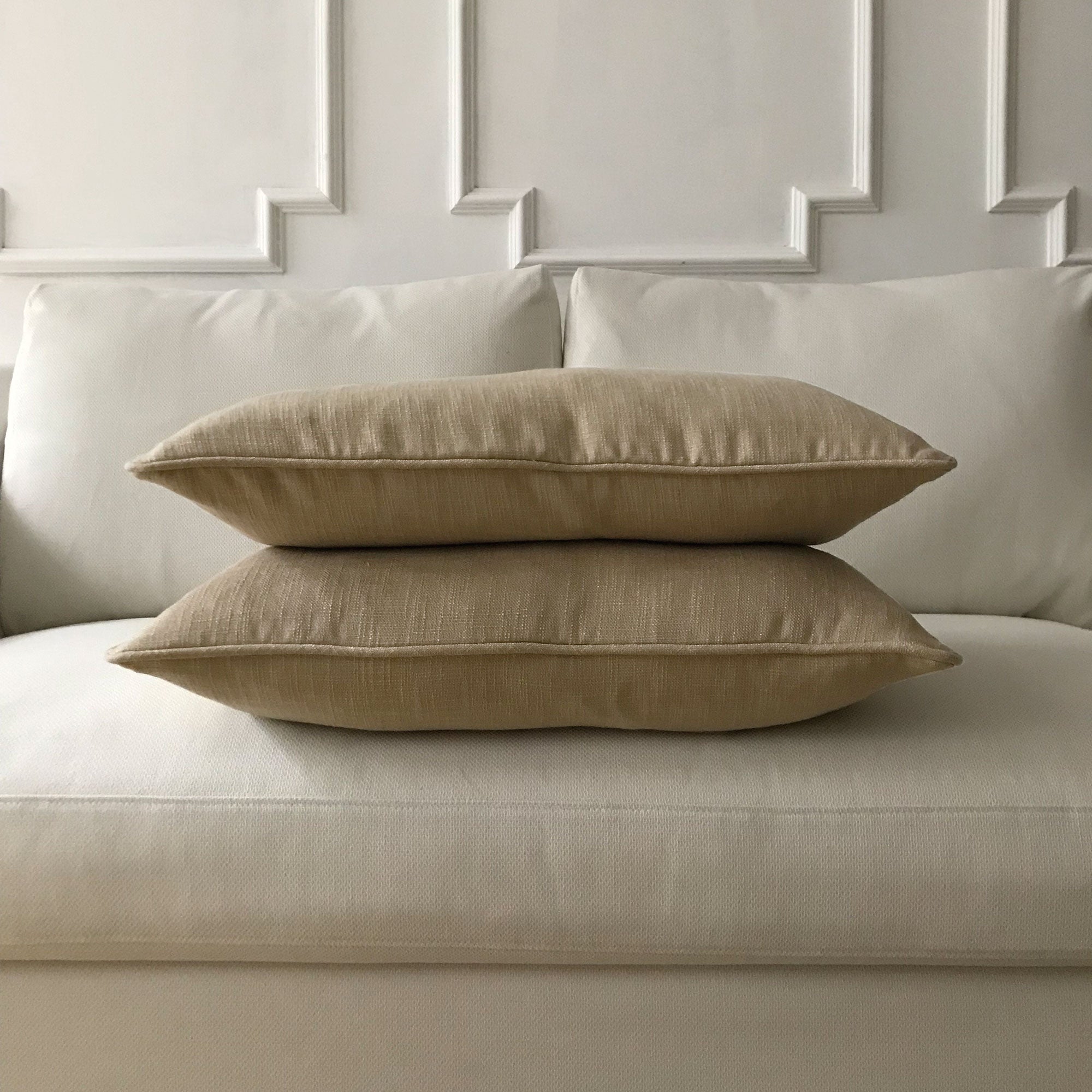 Light Brown Solid Linen Lumbar Pillow Cover 15x26