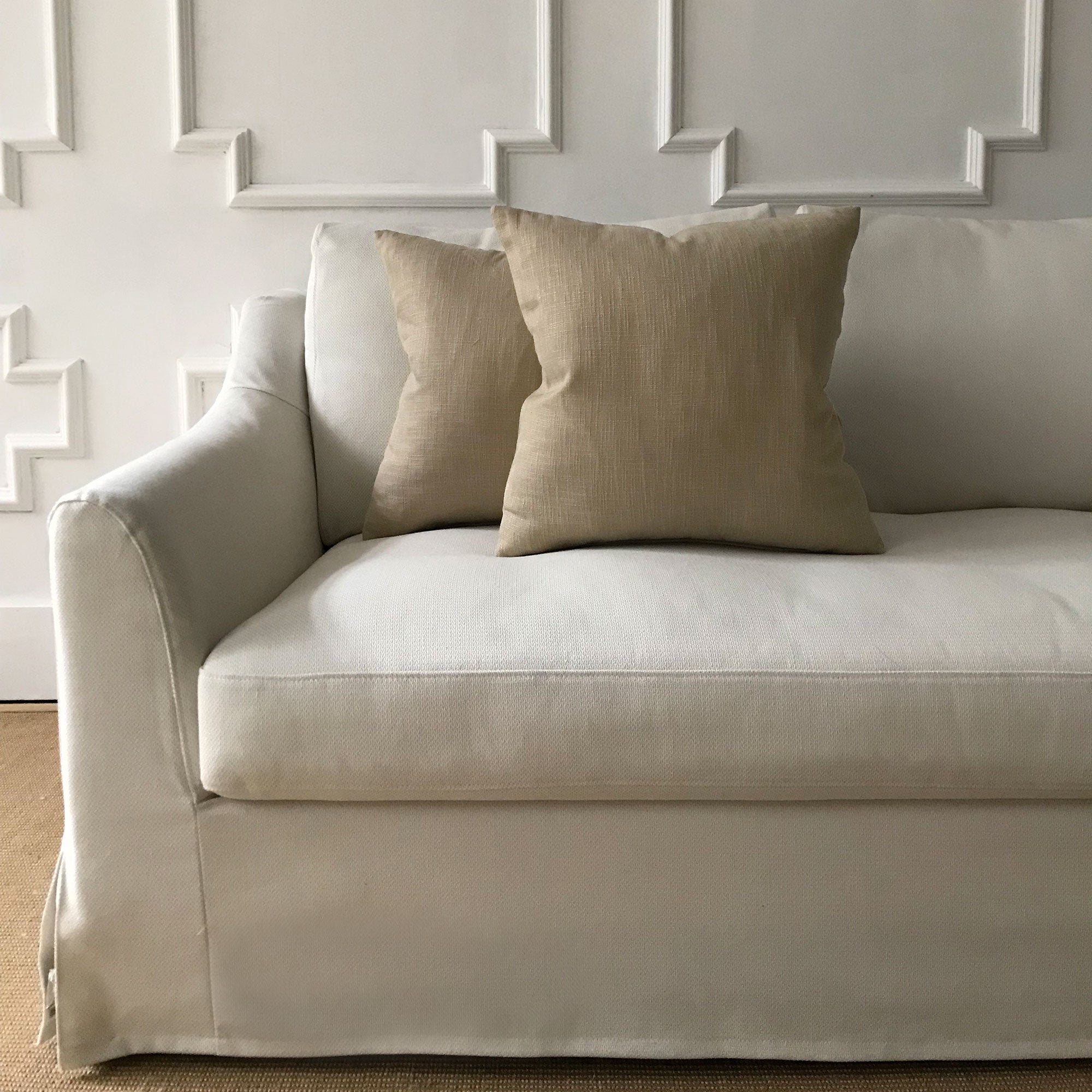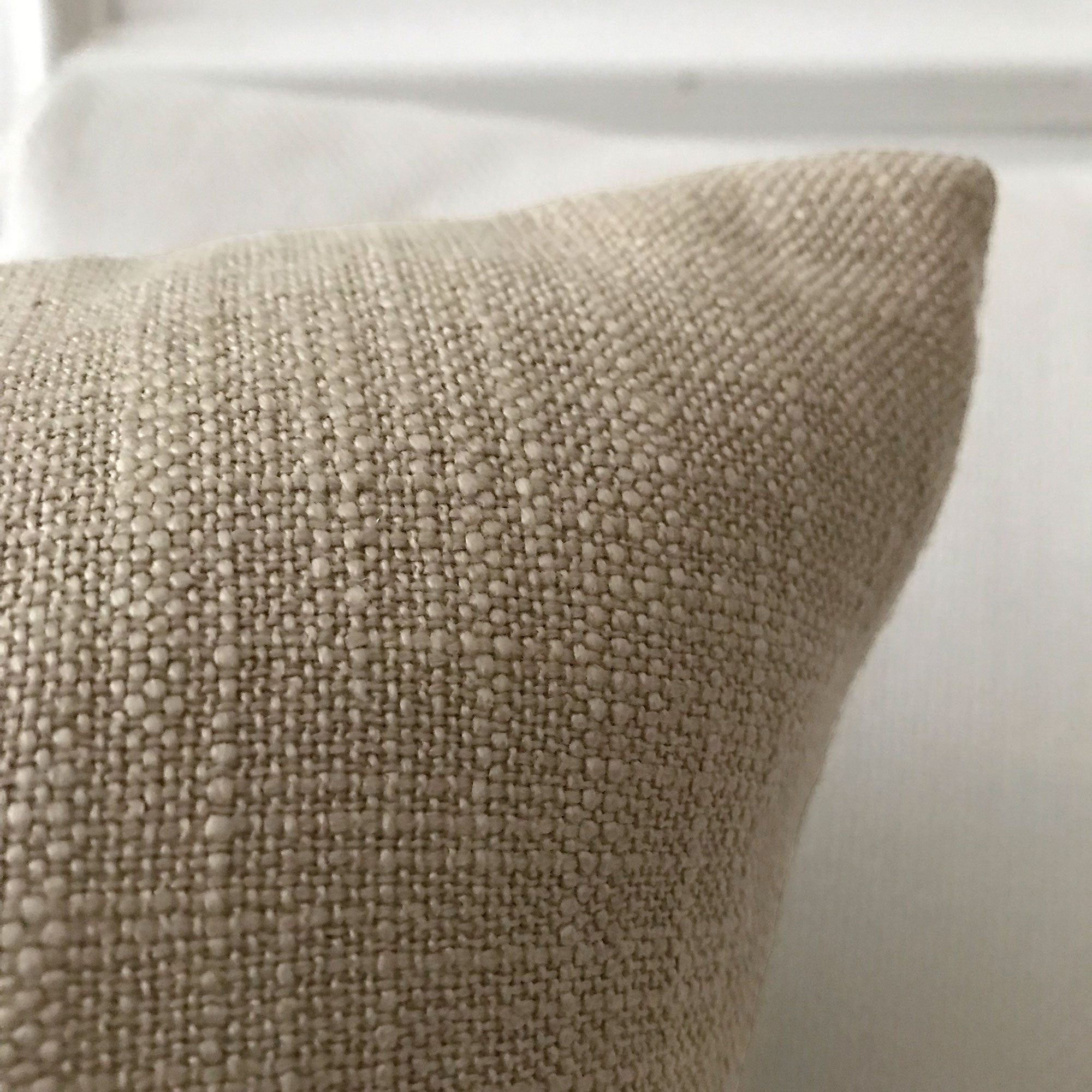 - Solid light brown linen for a textured and versatile accent