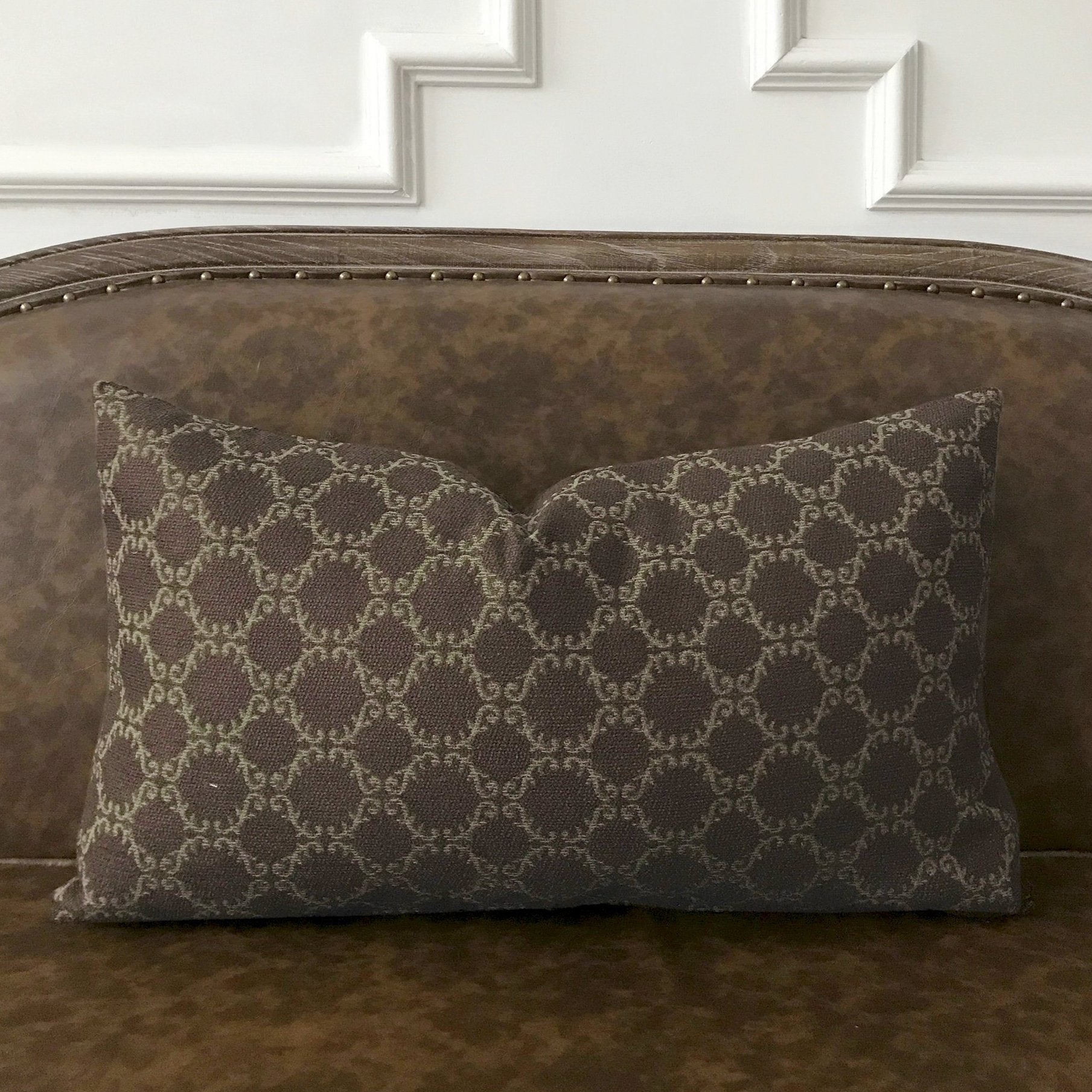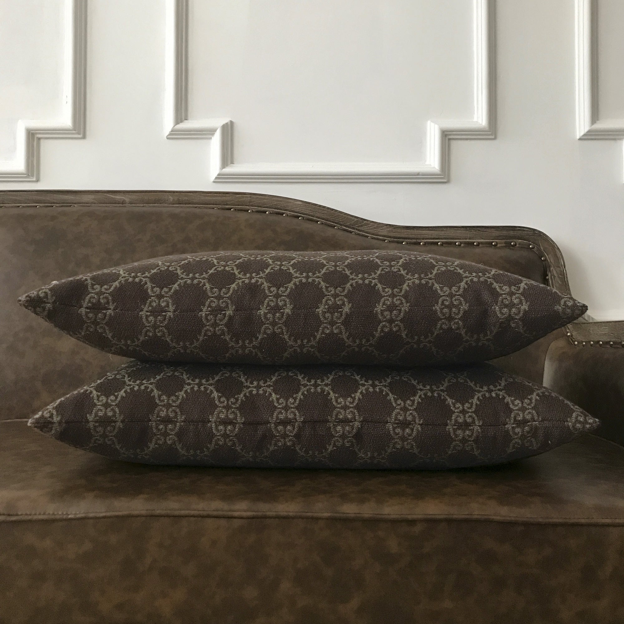 Brown and Teal Royal French Trellis Woven Lumbar Pillow Cover 15x26