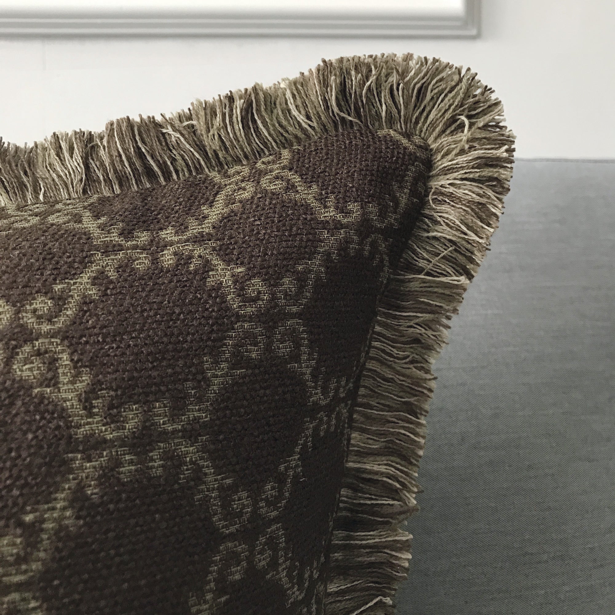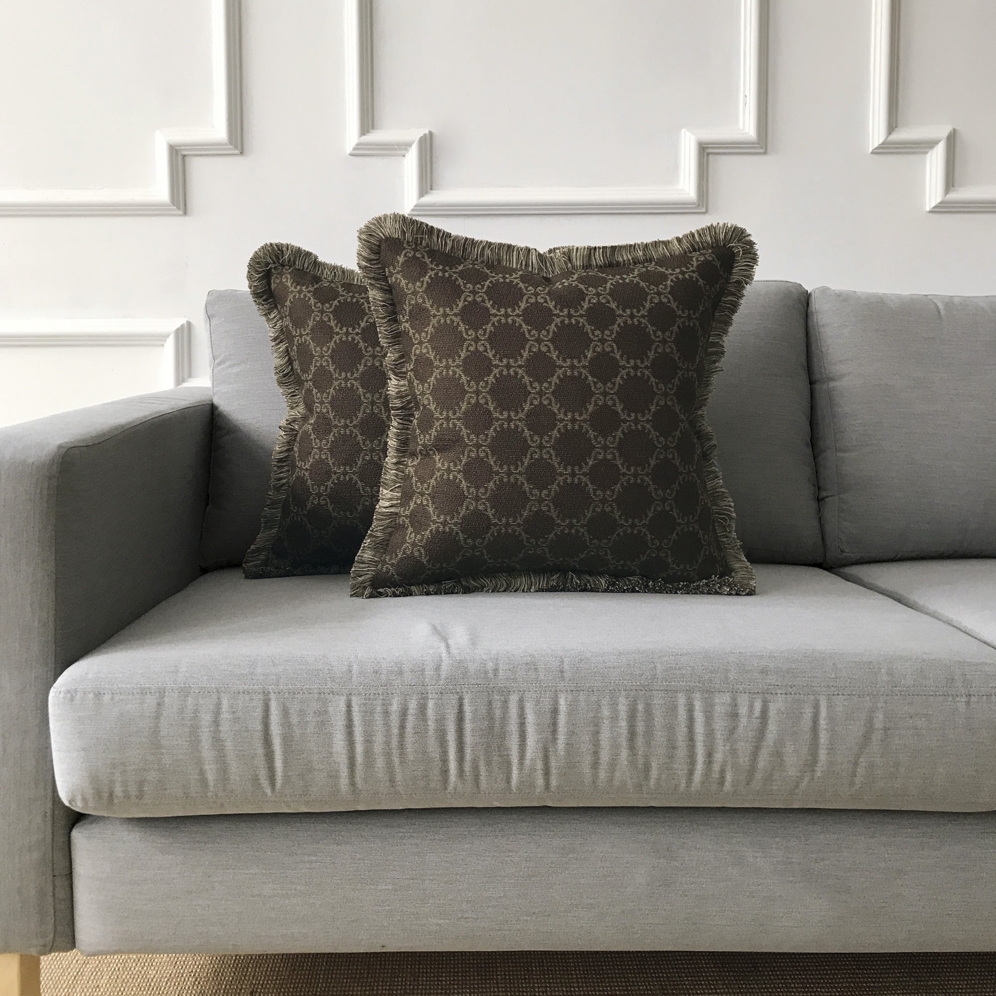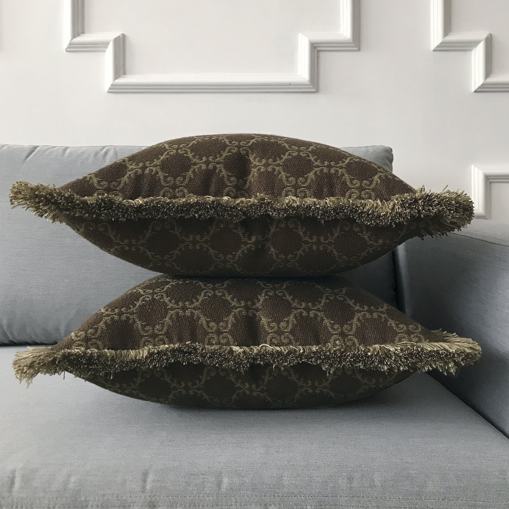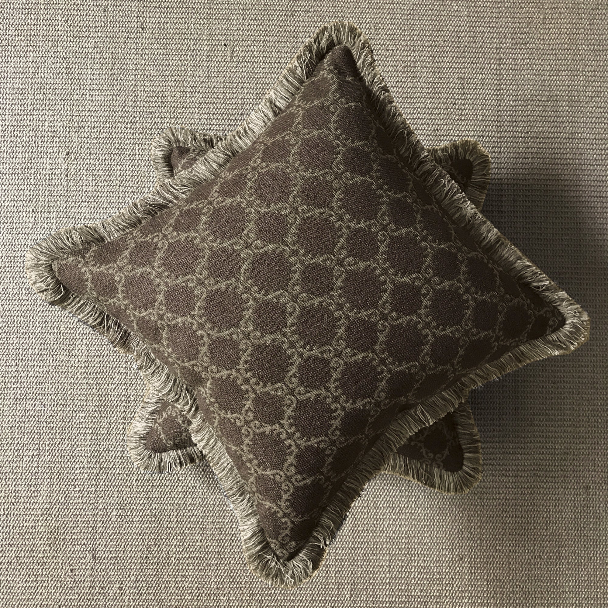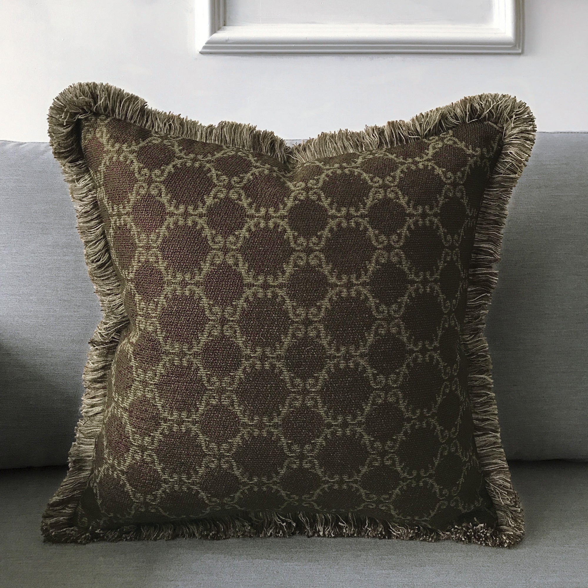 ⁌ Enhance your decor with the sophisticated charm of our Royal French Trellis Woven Throw Pillow Cover in 18x18. Featuring a classic woven trellis pattern, this pillow cover brings timeless elegance to any room. The brush fringe edge adds a touch of texture and refinement, while the handcrafted quality ensures durability and style. Perfect for complementing traditional, transitional, or French-inspired interiors.