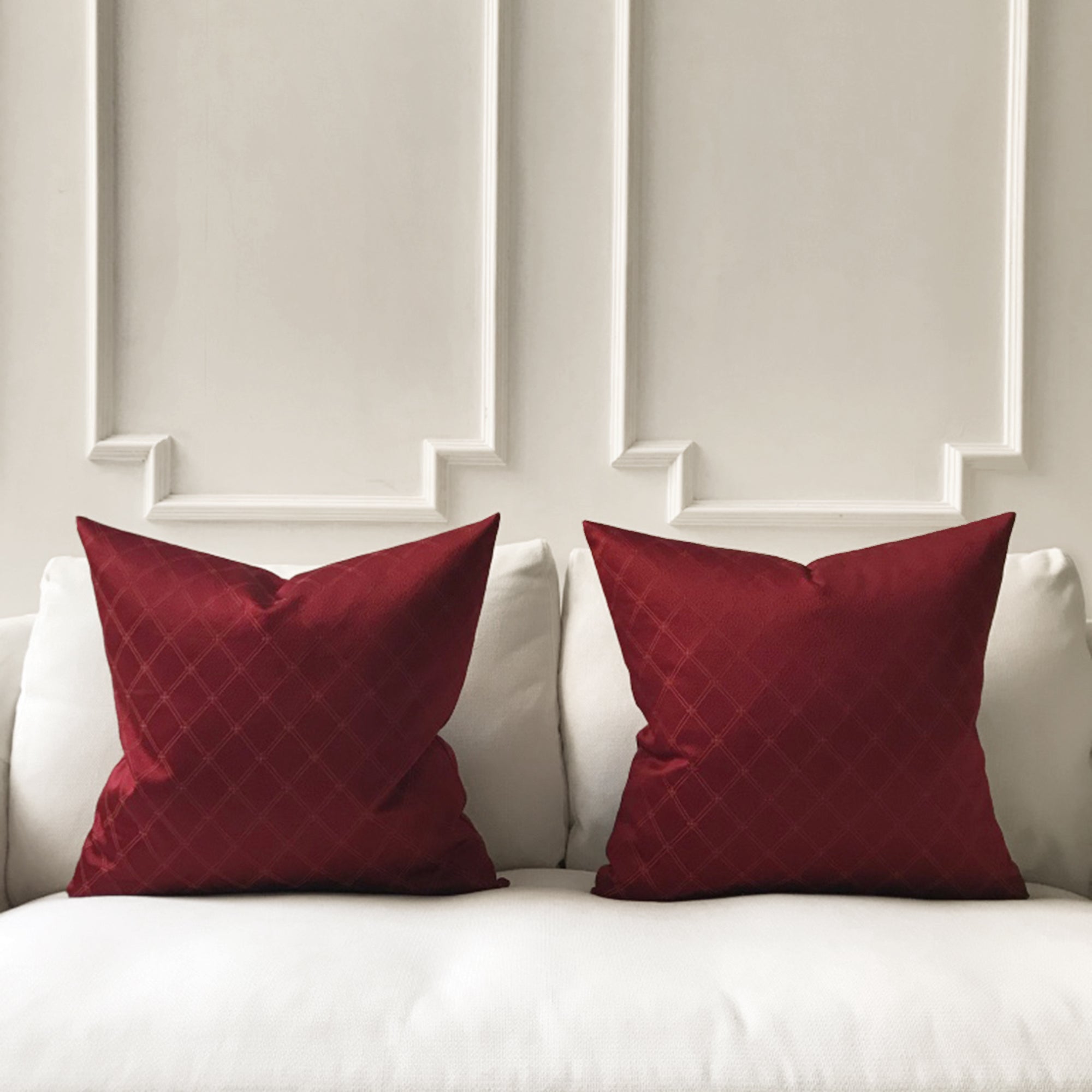 ⁌ Bring timeless elegance to your space with this ruby diamond jacquard throw pillow cover. Designed with a sophisticated diamond trellis pattern and delicate floral detailing, this pillow cover adds rich texture and depth to any décor. The bold ruby-red hue makes it a striking accent for sofas, beds, or accent chairs, blending seamlessly with both classic and modern interiors.