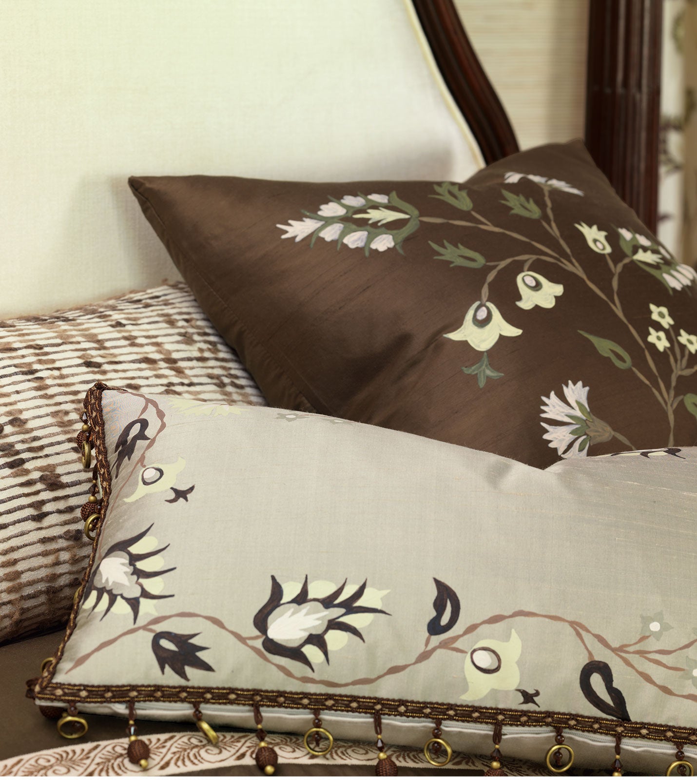 • 100% sage silk decorative pillow with a hand-painted floral botanical design