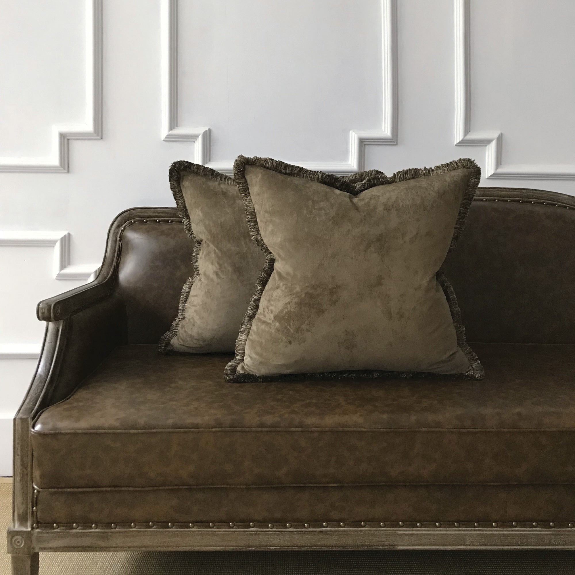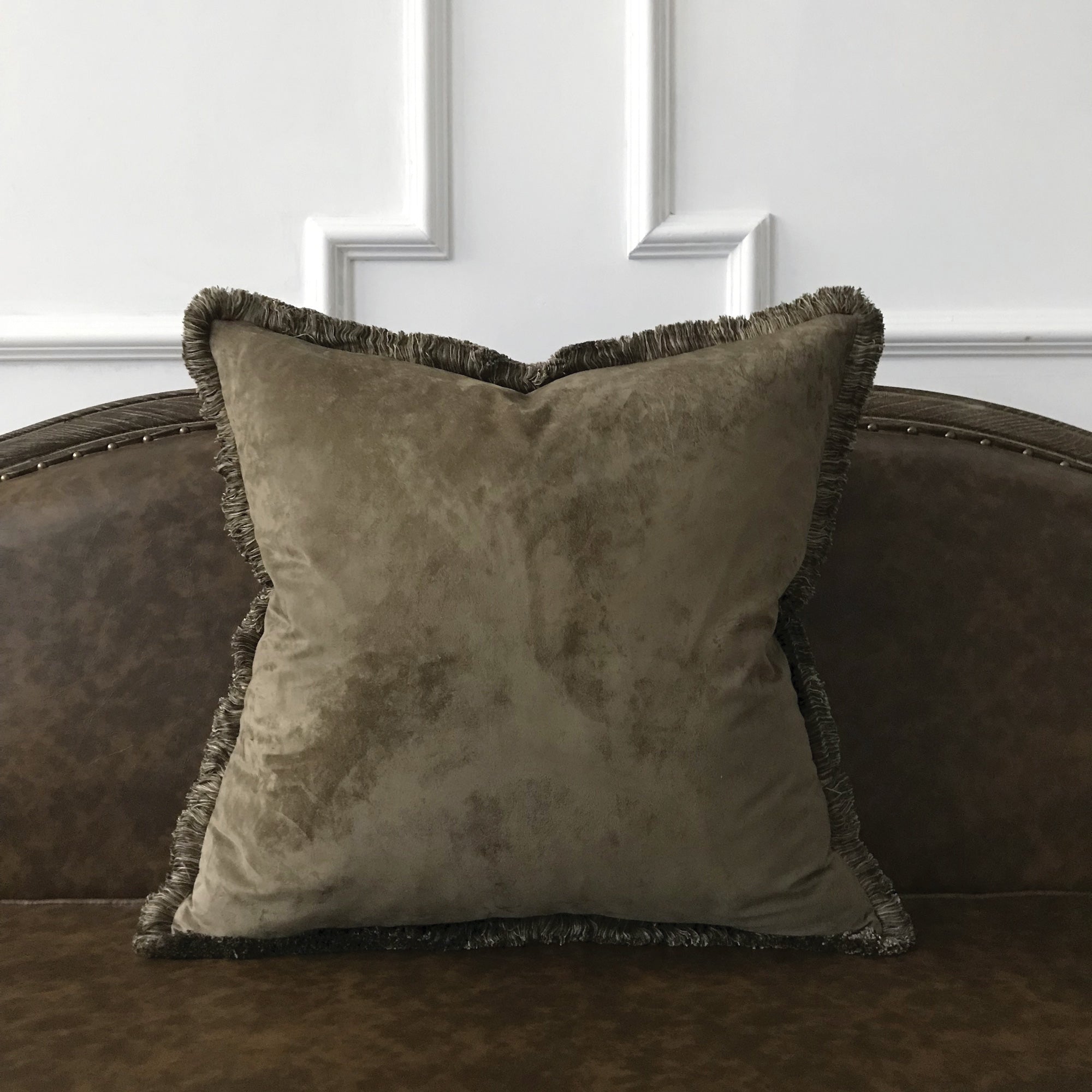 Mountain Mocha Faux Suede Brush Fringe Throw Pillow Cover 22x22