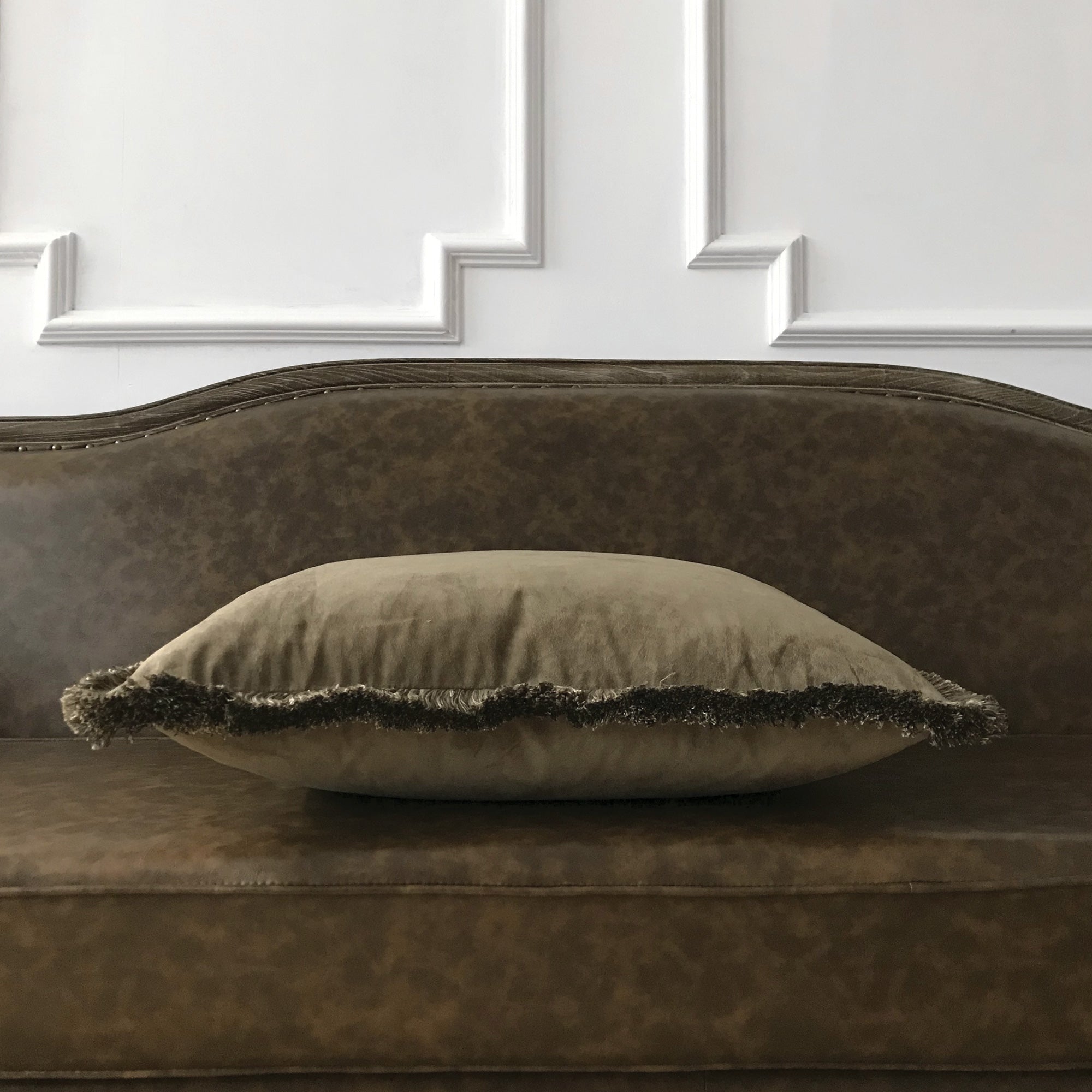 Decorative fringe enhances the pillow’s tactile appeal and adds a refined finishing touch