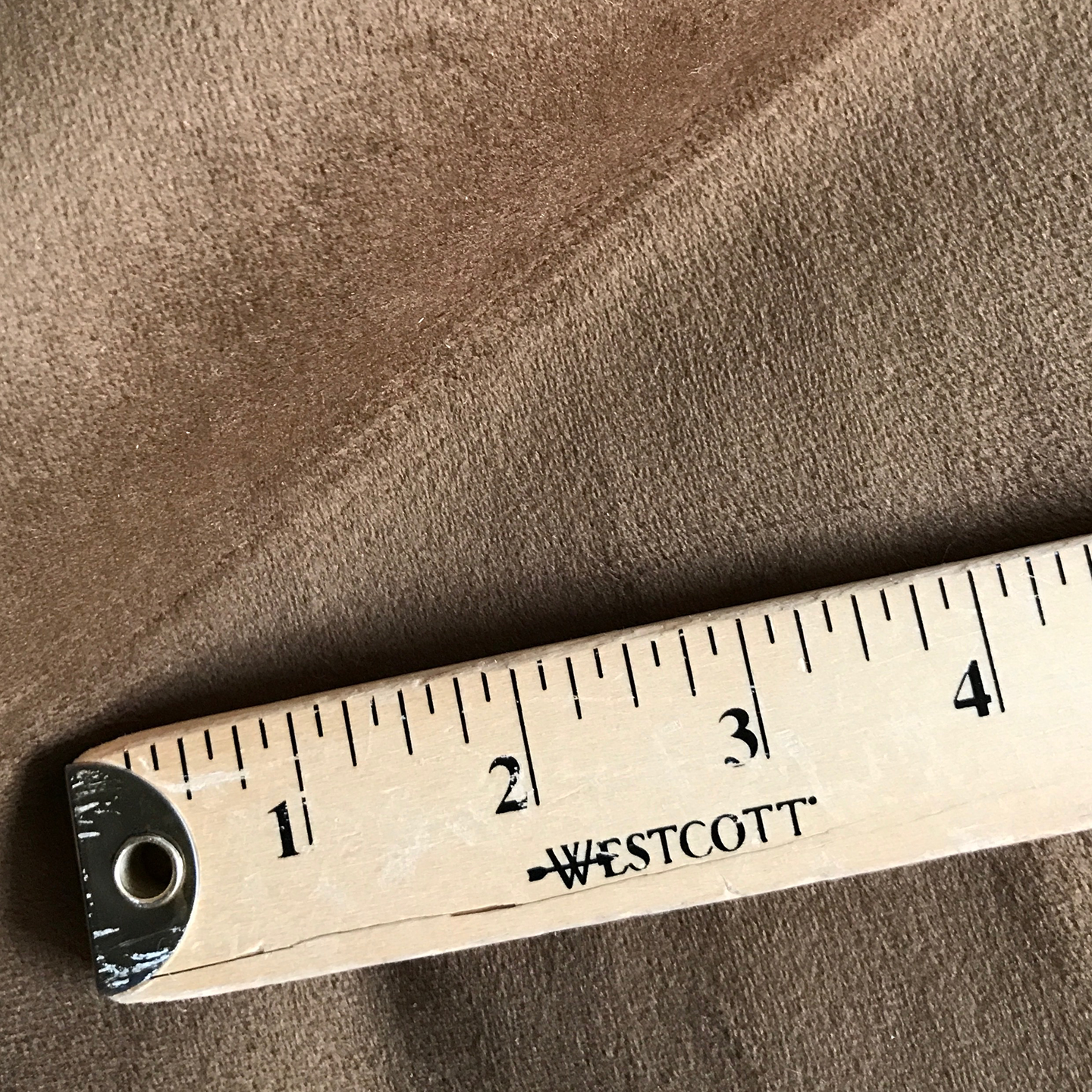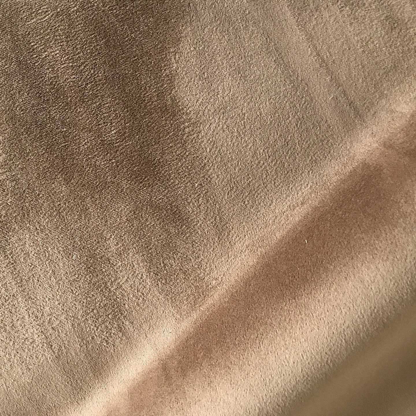 Camel colored micro suede and velvet blend fabric.