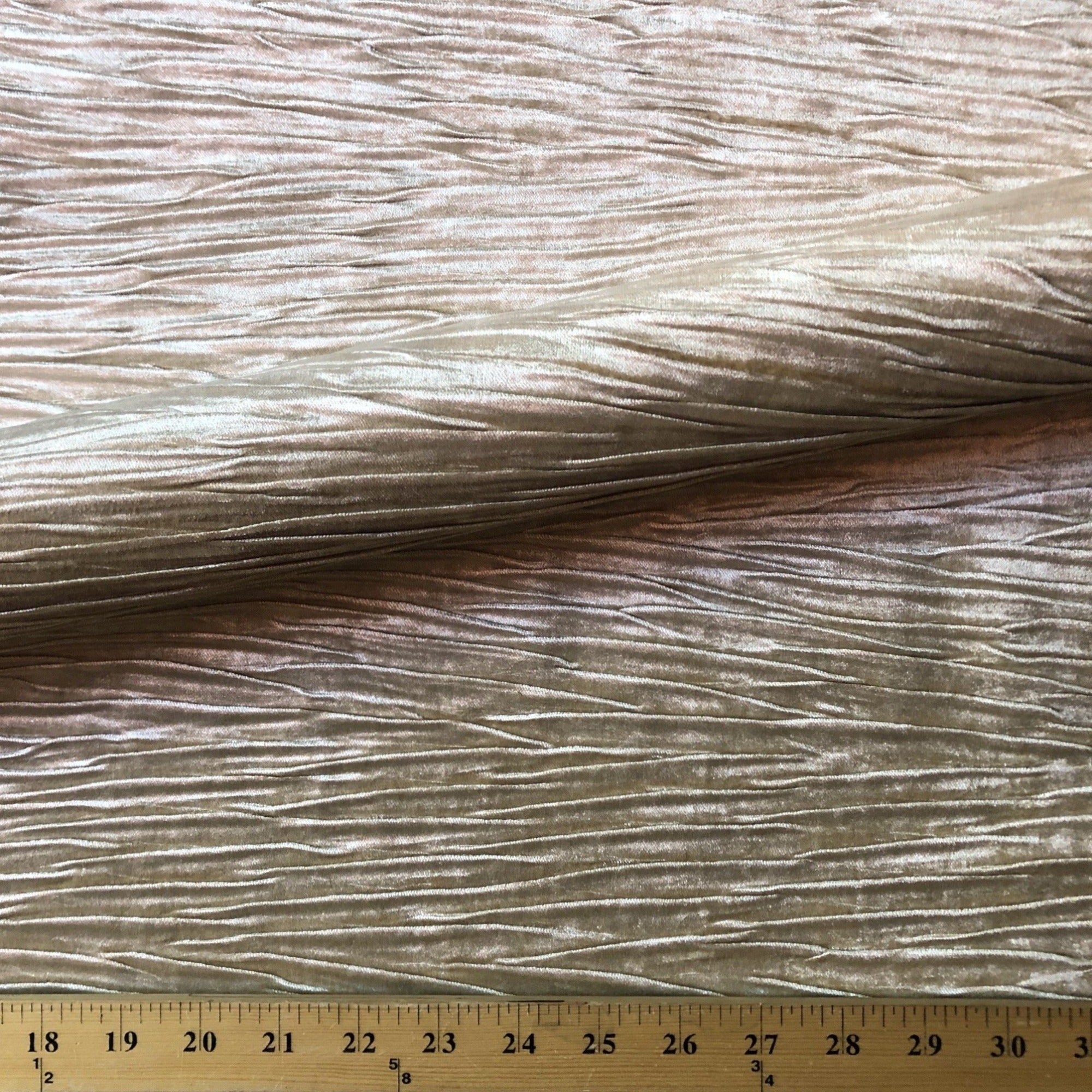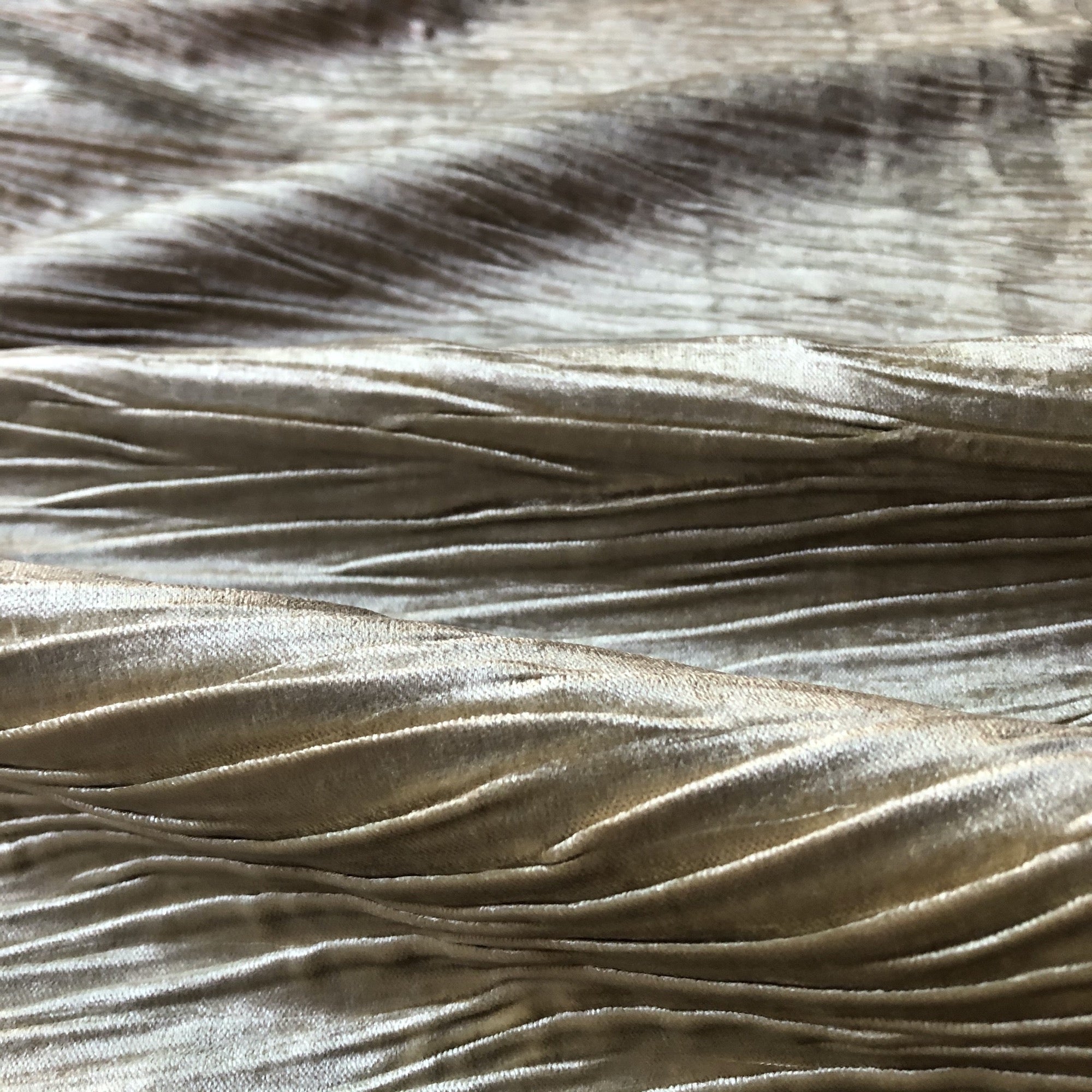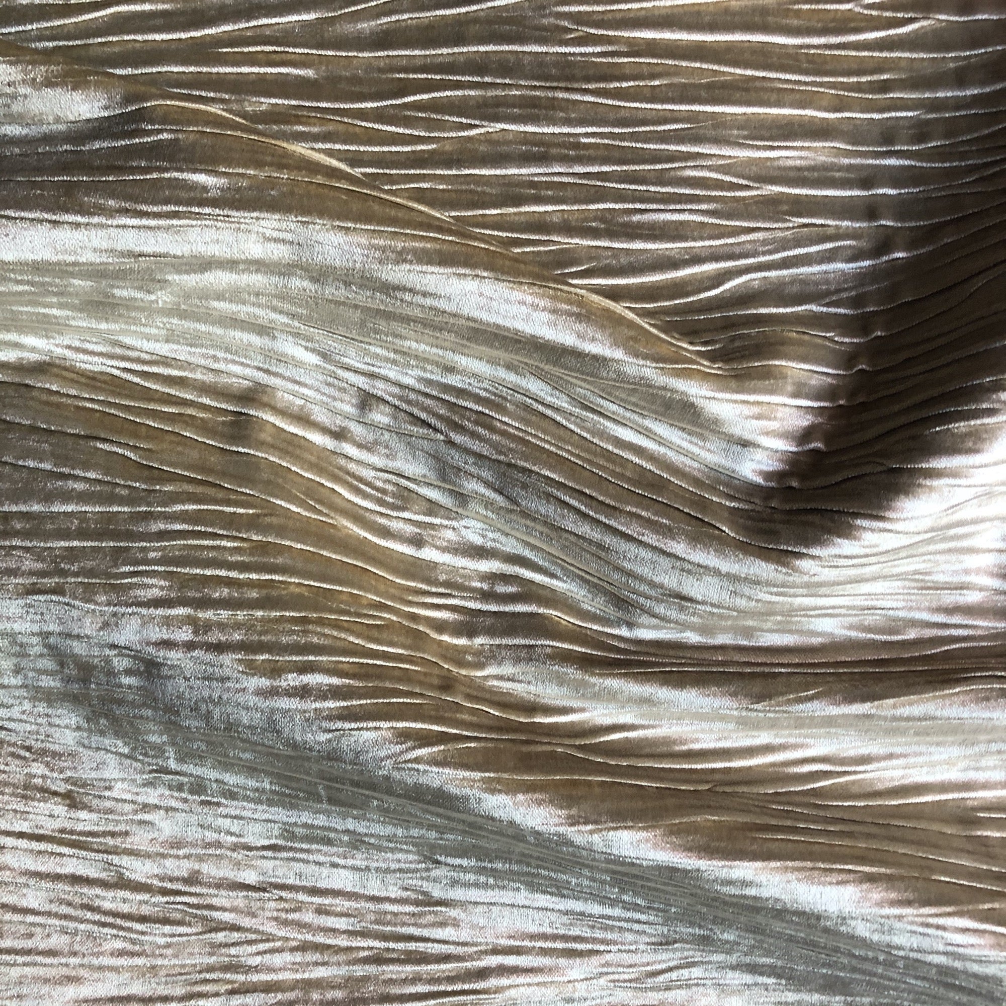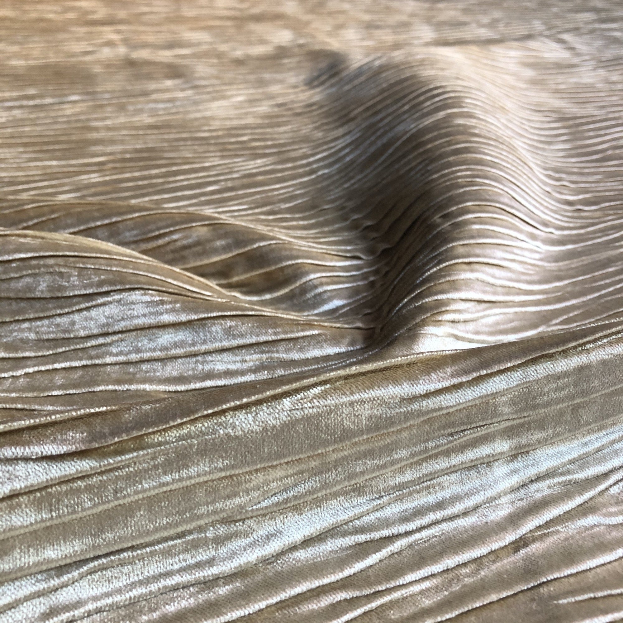 Silky smooth, highly-textured abstract pleat fabric in a creamy metallic fawn hue.
