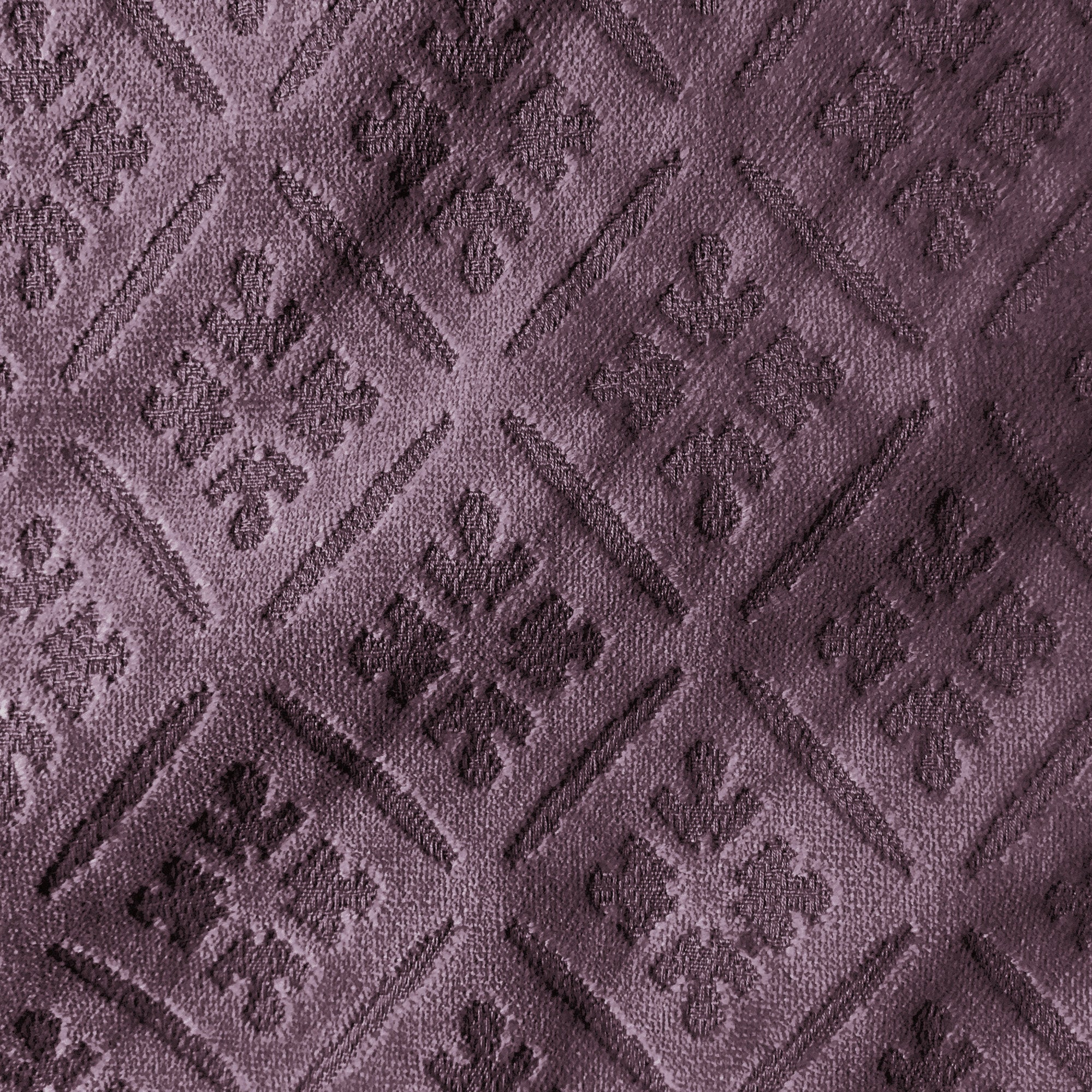 Adorn any interior with this Razzmic Berry Geometric Cut Velvet Upholstery Fabric 54", perfect for arts and crafts, DIY, upholstery, home decorating, and more. Give your bedding, chairs, cushions, windows and more a fresh new look with our selection of high quality fabrics curated by a team of trend leading designers. This luxurious geometric velvet upholstery fabric in purple meets flair with versatility, offering the perfect personal touch for any aesthetic. Designed and crafted by skilled textile artisans this fabric is made to last and never compromises on quality. All fabric is sold by the yard in 1-yard increments. Unfortunately, we do not accept returns on fabric orders but swatches are available.