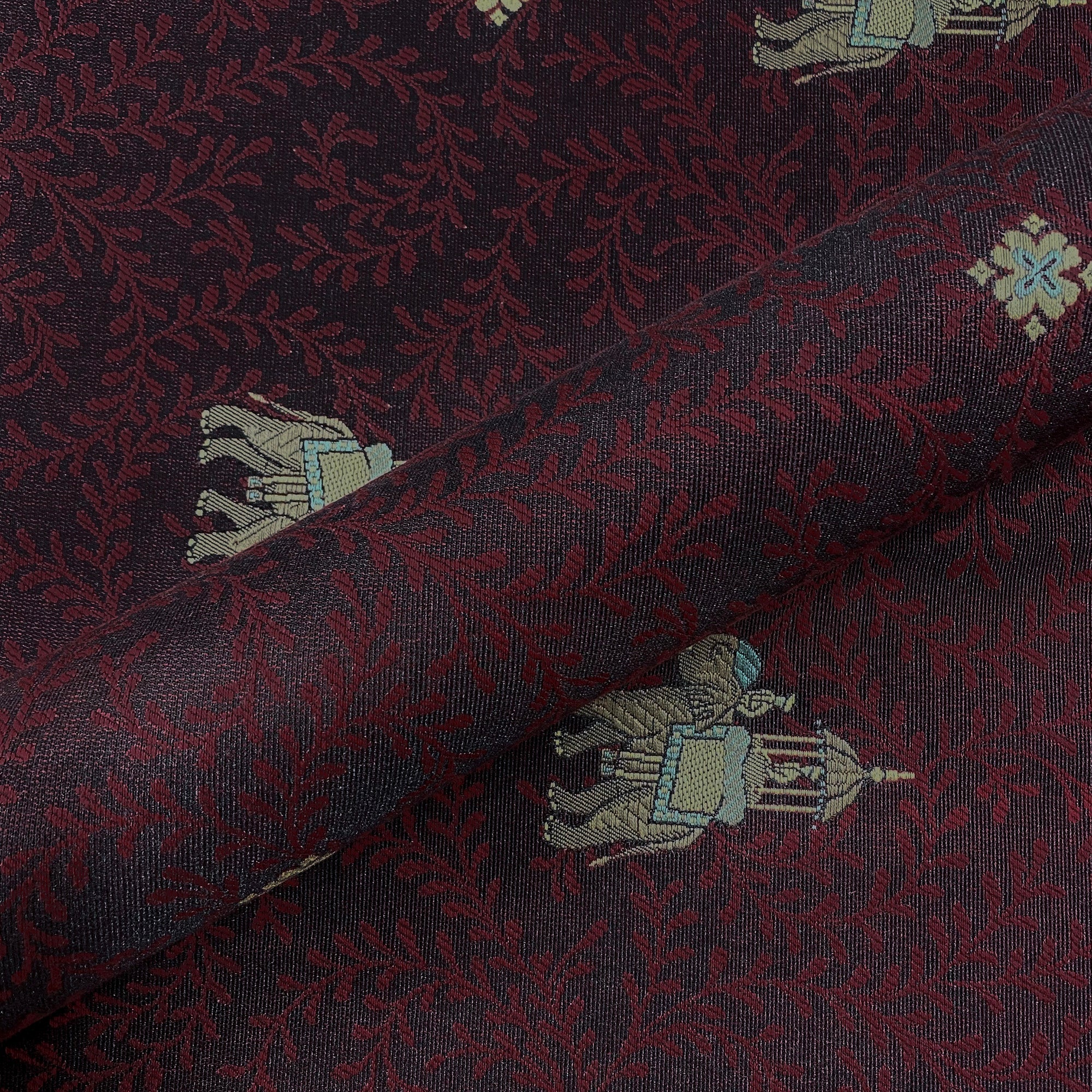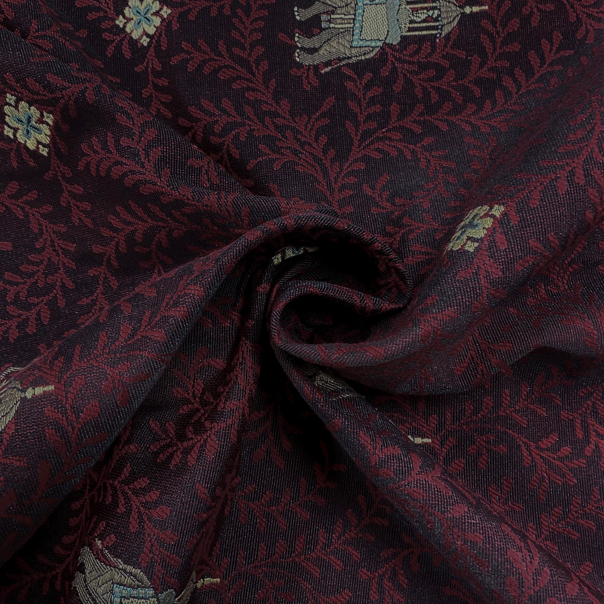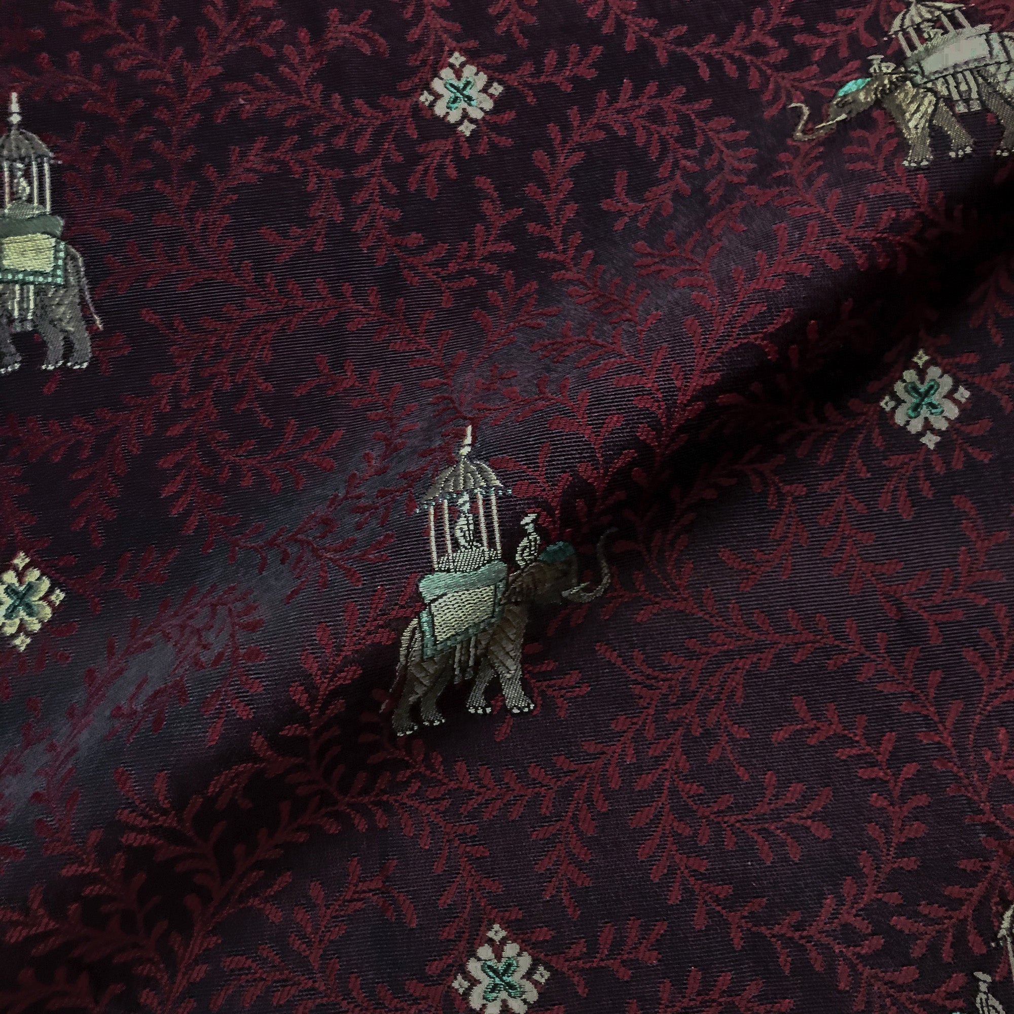 Pasha Ruby Elephant Embroidered Upholstery Fabric 54"