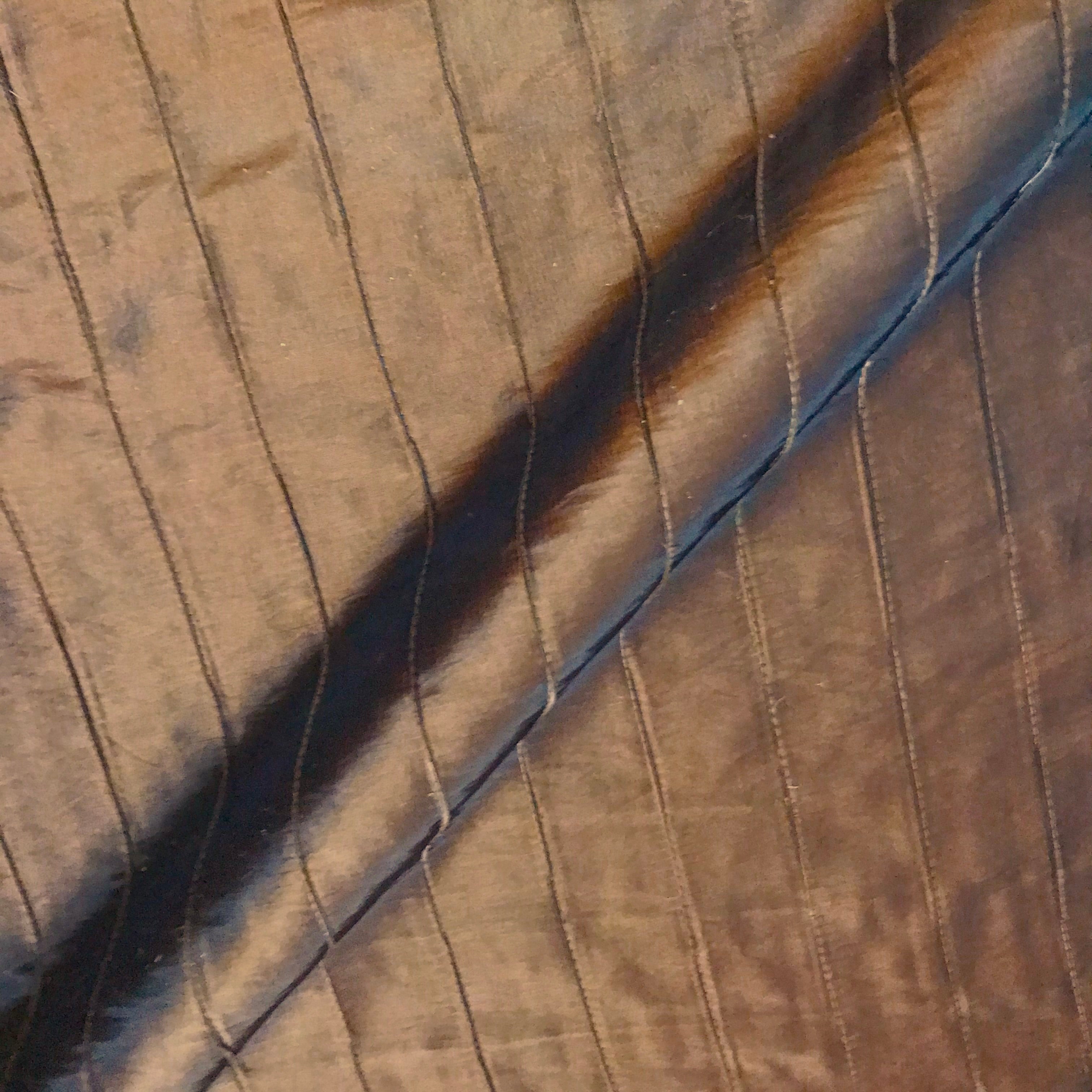 Silky satin fabric in luxuriously hued chocolate brown color features pin tuck stripe design 1.5" wide in a shiny charmeuse fashion.