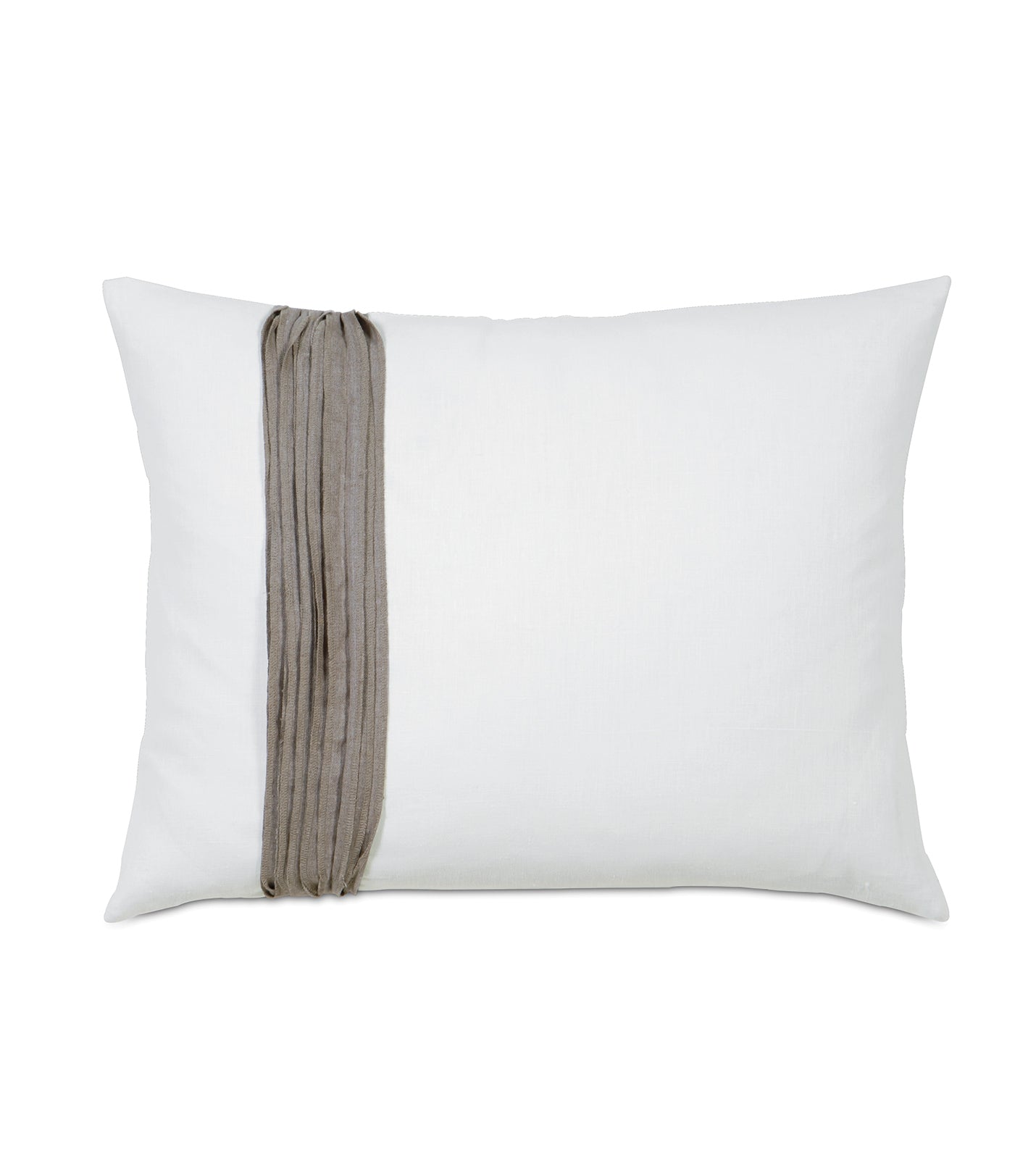 • 100% linen standard sham in white with linen appliqué on face (L)