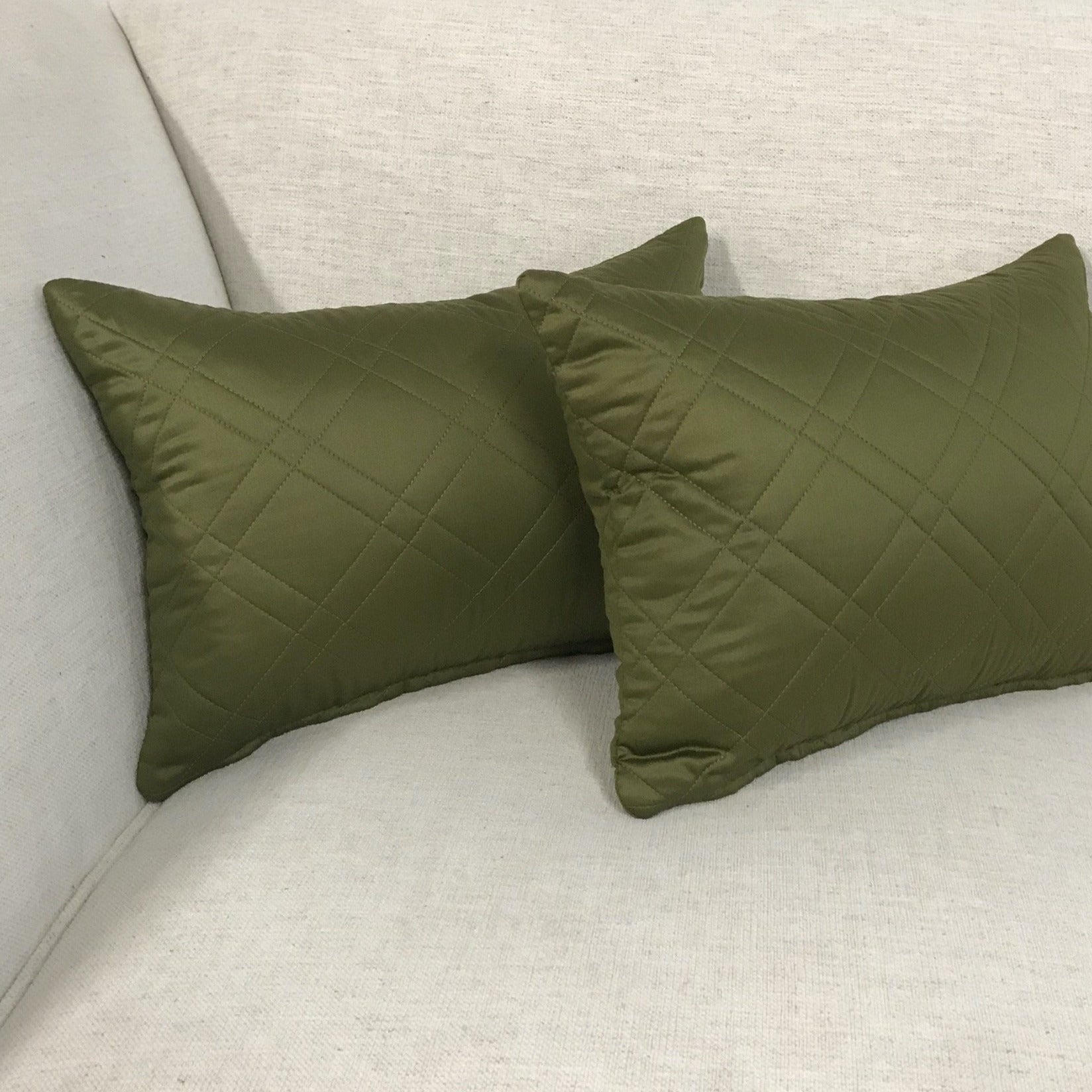 Olive Quilted Sateen Boudoir Pillow Cover 12x18