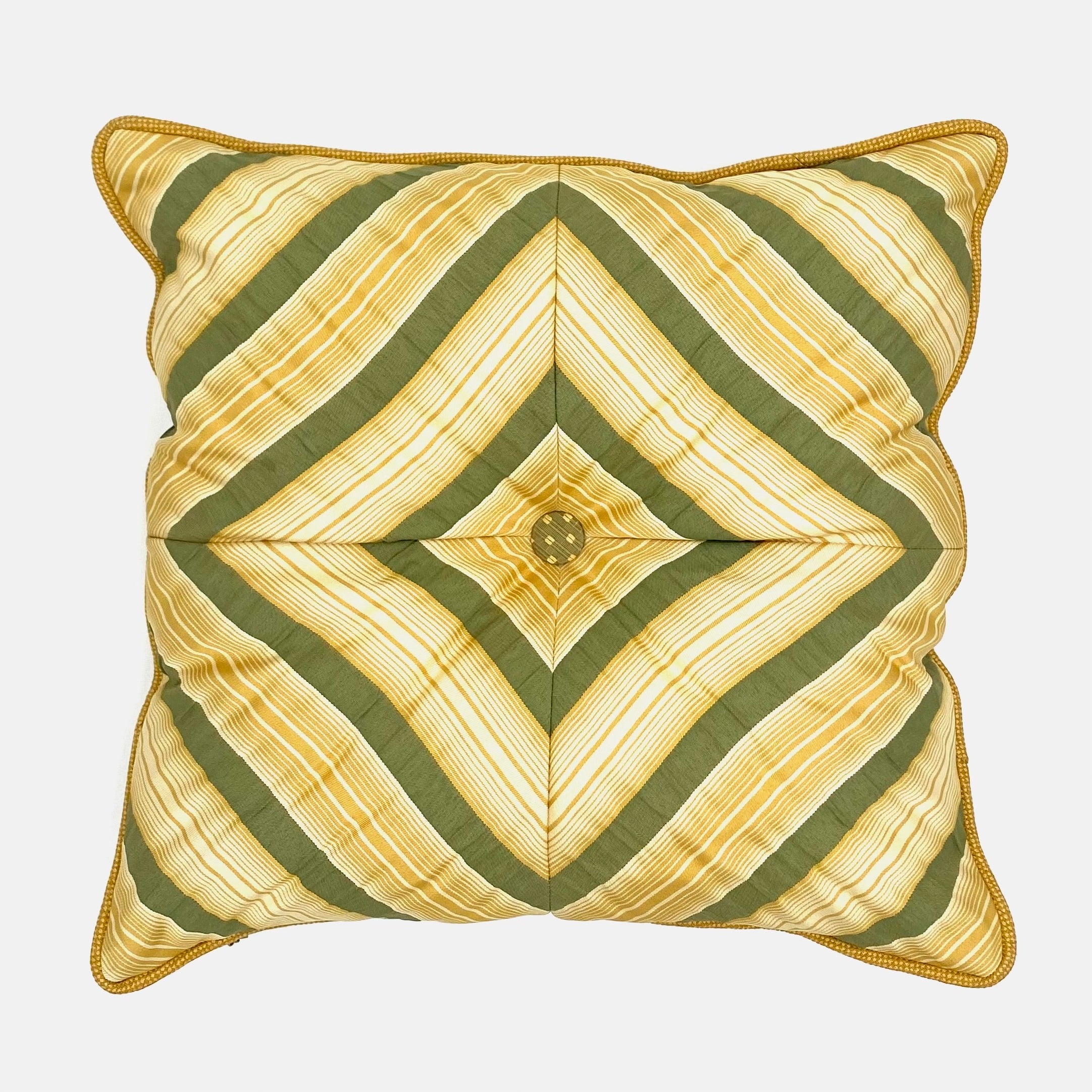 Green and Yellow Button-Tufted Throw Pillow 16x16