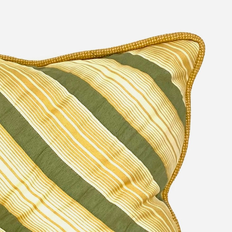 - Mitered stripe design in fresh green and yellow tones for a bold and cheerful aesthetic