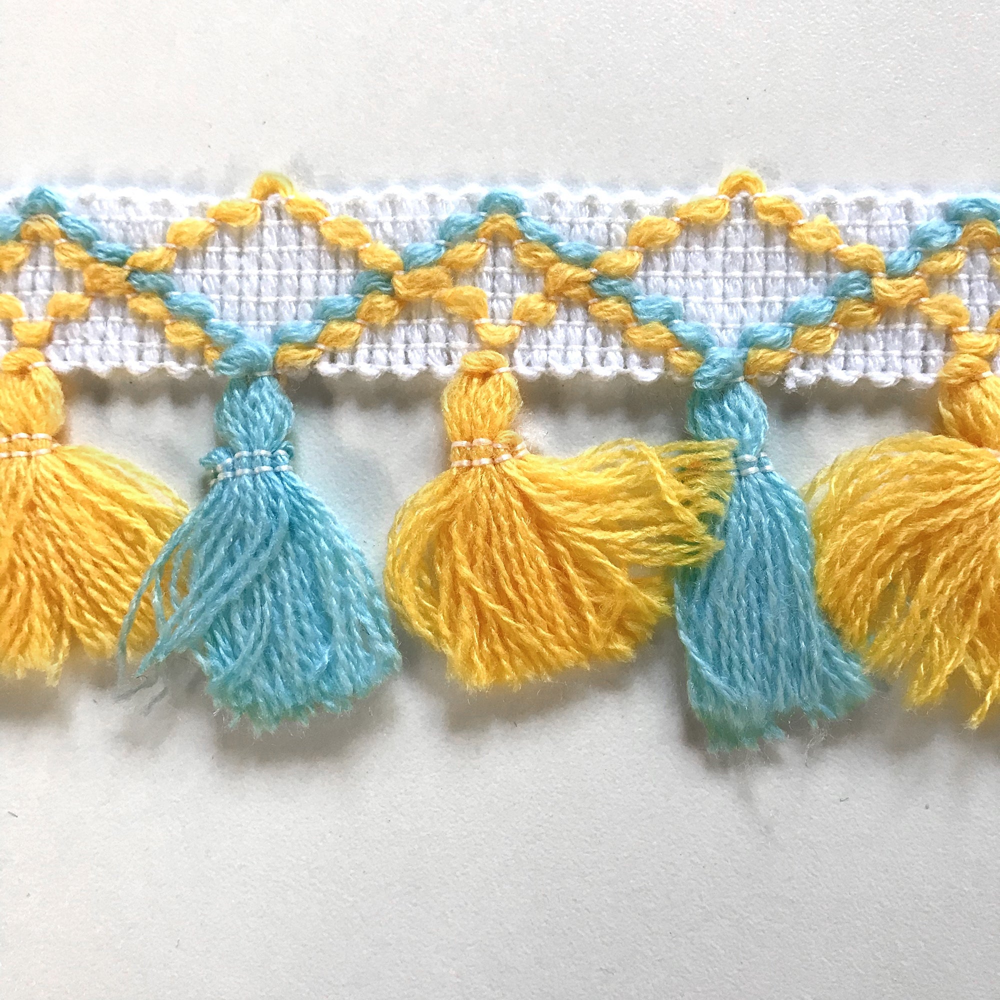 Bright Yellow and Cyan High quality Decorative Tassel Trim by the yard