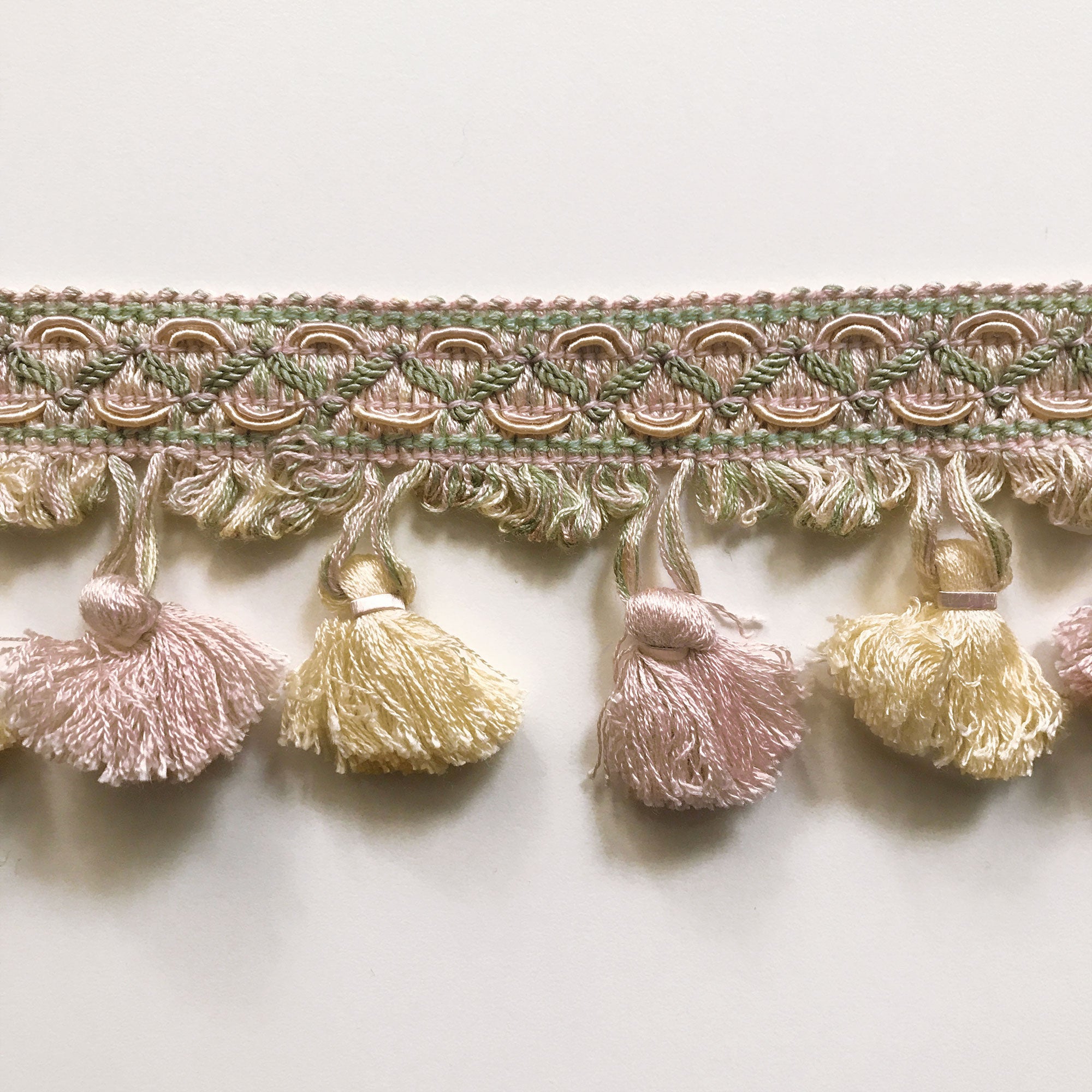 Blush Pink and Yellow High Quality Decorative Tassel Trim by the yard